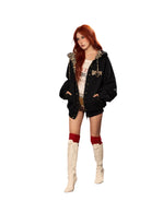 Featuring metallic gold studs along the seams and pockets, leopard print accents on the shoulders, and a unique embroidered chest detail, this hoodie delivers fierce character and standout appeal. Ideal for fall and winter, the oversized fit ensures comfort and ease of movement.
