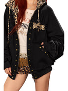 BeerBro Reversible Studded Leopard Print Cotton Hoodie for Fall and Winter