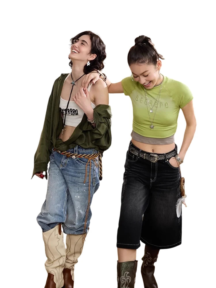 BeerBro Slim Fit Cropped T-Shirt with Distressed Raglan Sleeves