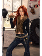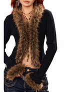 Elevate your autumn and winter wardrobe with this slim fit cardigan sweater jacket for women. Featuring a stylish colorblock design and soft faux fur trim on the collar and sleeve cuffs, this piece blends warmth with contemporary fashion. The long sleeves and fitted silhouette offer a flattering look, making it perfect for pairing with jeans or layered ensembles. Ideal for creating edgy street-style outfits, this jacket adds a bold statement to any urban-inspired look.