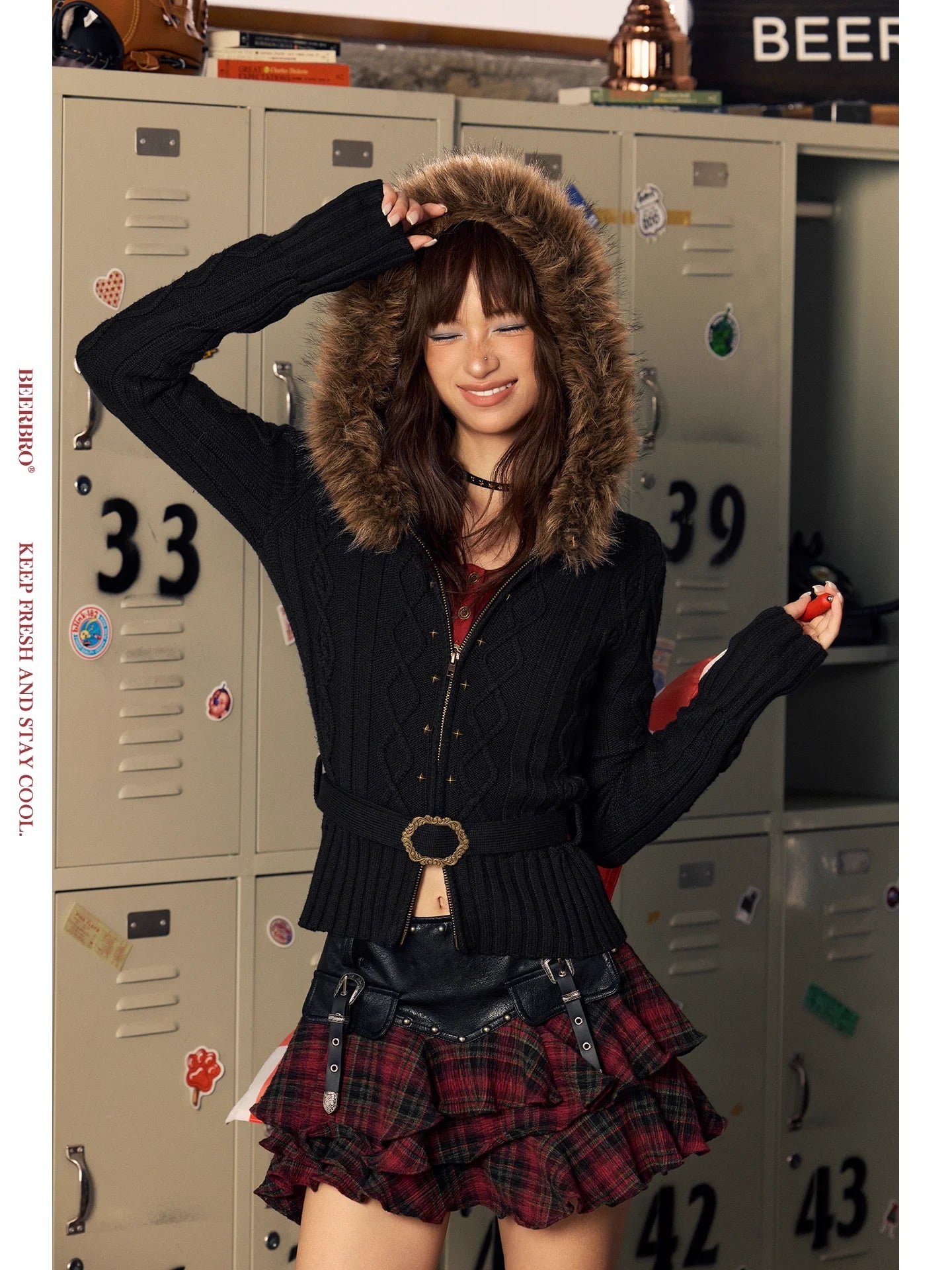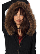 Stay warm and stylish with this slim fit hoodie jacket crafted from soft merino wool. Designed for women, it features a zip-up front, cozy faux fur-trimmed hood, and a cinched waist with a decorative buckle for a flattering silhouette. Perfect for layering during chilly months, it combines function with fashion for a versatile winter wardrobe essential.