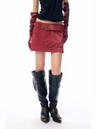 BeerBro Star-Embellished Faux Leather Mini Skirt with Wide Buckle Waistband