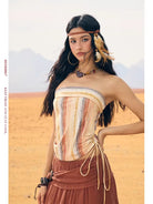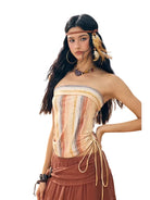 Embrace summer vibes with this vibrant striped ruched tube top for women. Featuring a strapless design and fitted silhouette, this top is both bold and flattering. Accented with beaded or sequin details, it's perfect for festival outings or warm-weather adventures. Pair it with your favorite skirt or shorts for an effortlessly stylish look.