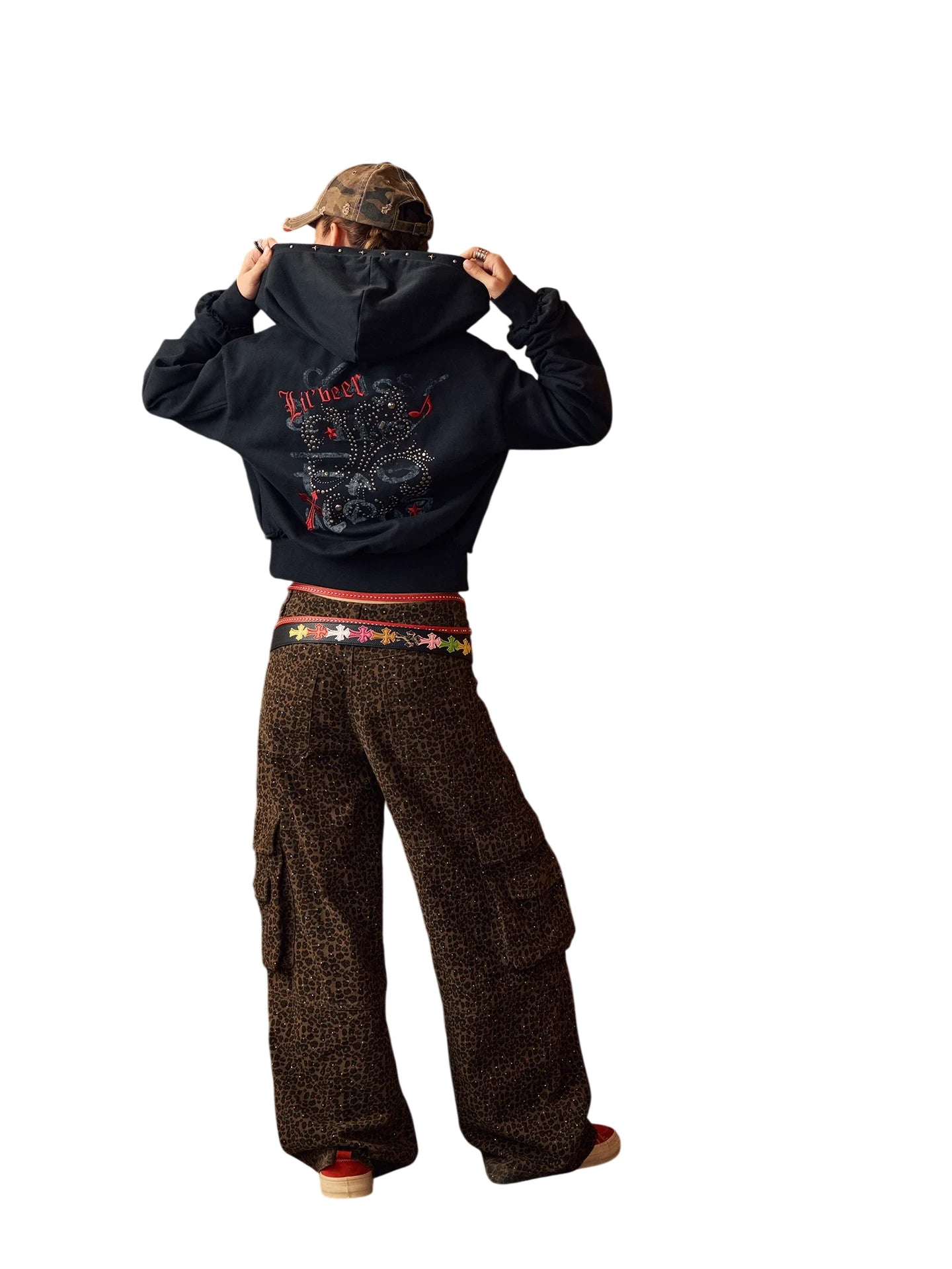 BeerBro Studded Foil Print Zip-Up Sweatshirt Jacket