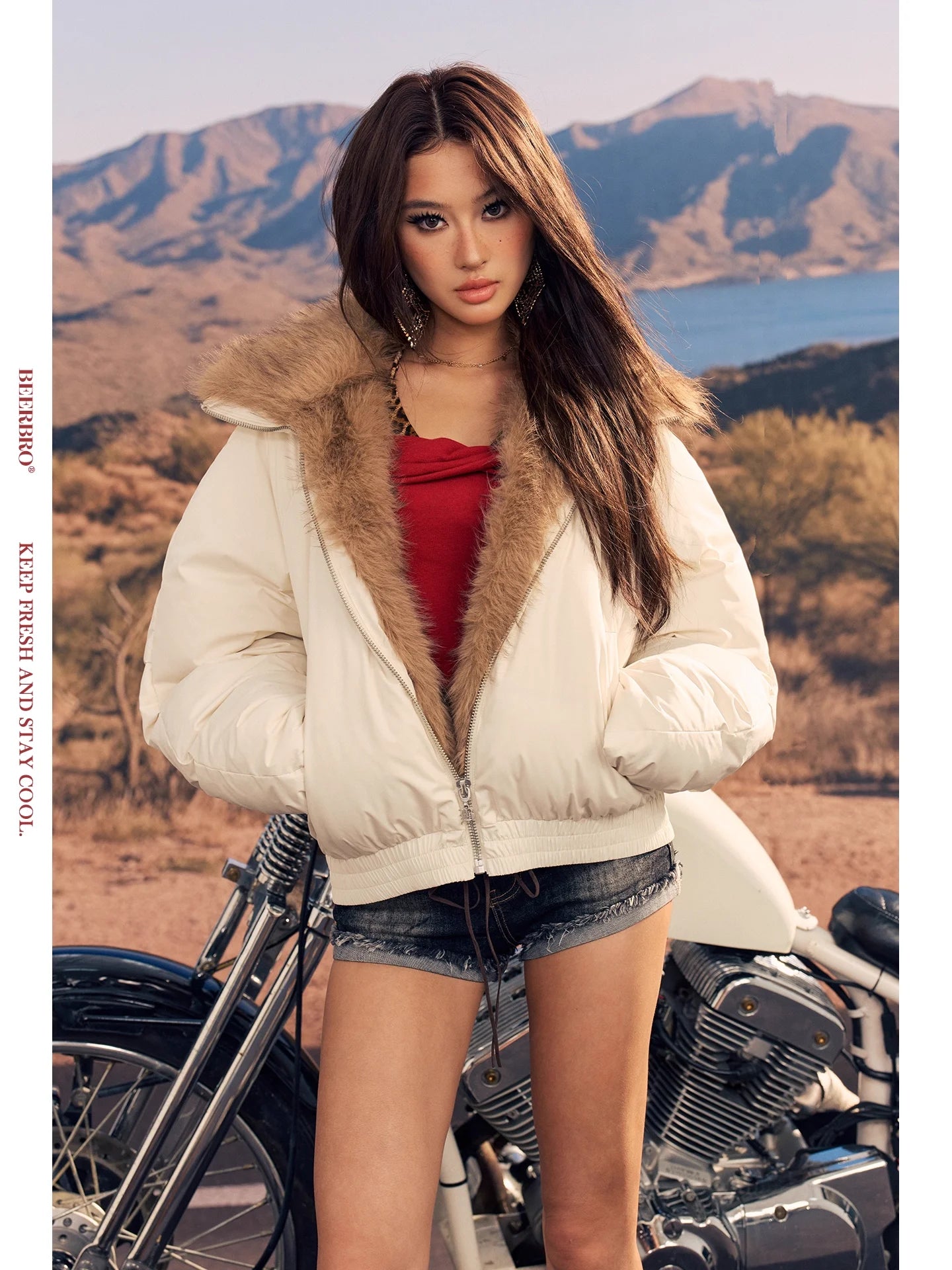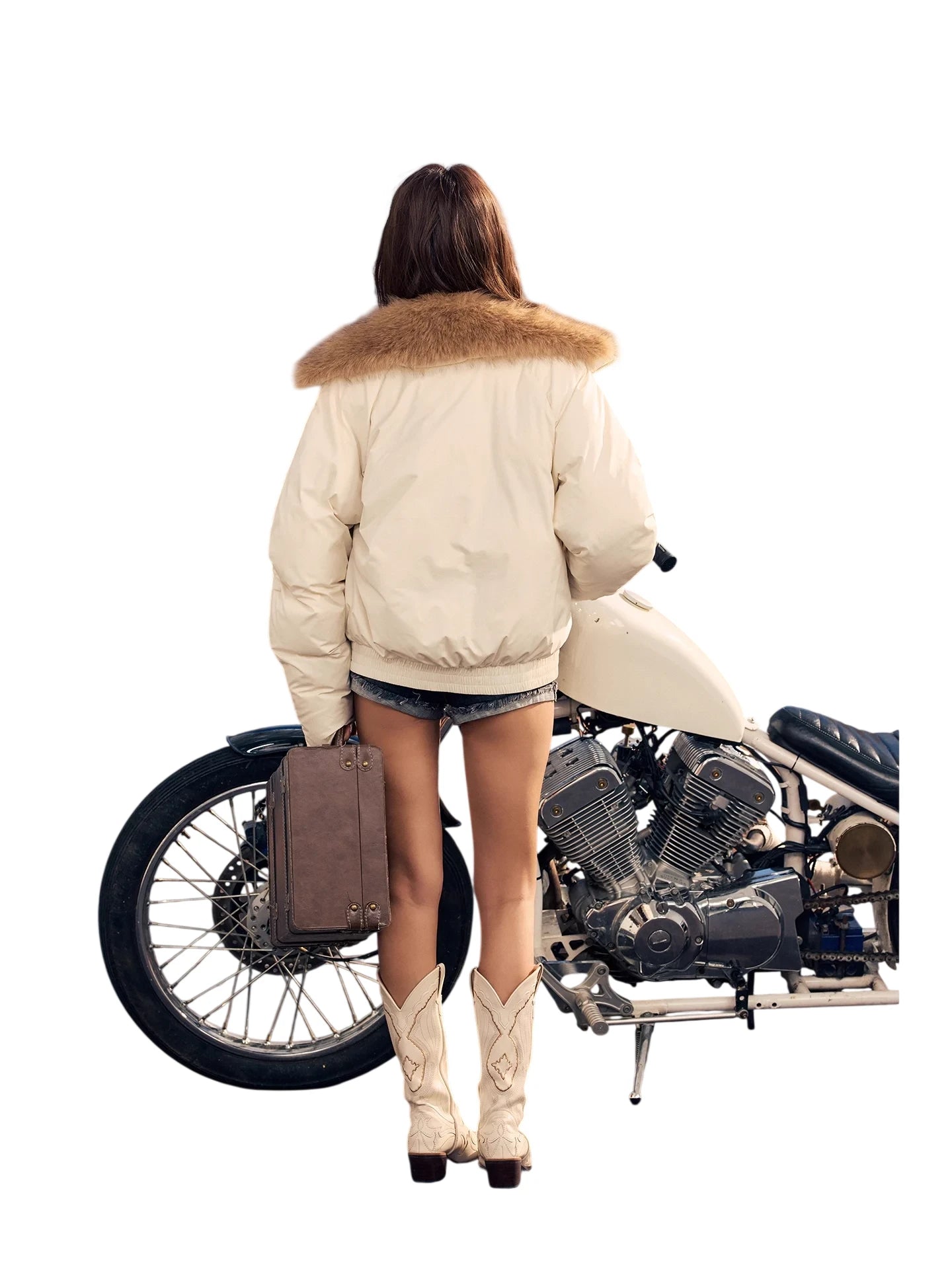 BeerBro White Duck Down Faux Fur Cocoon Parka