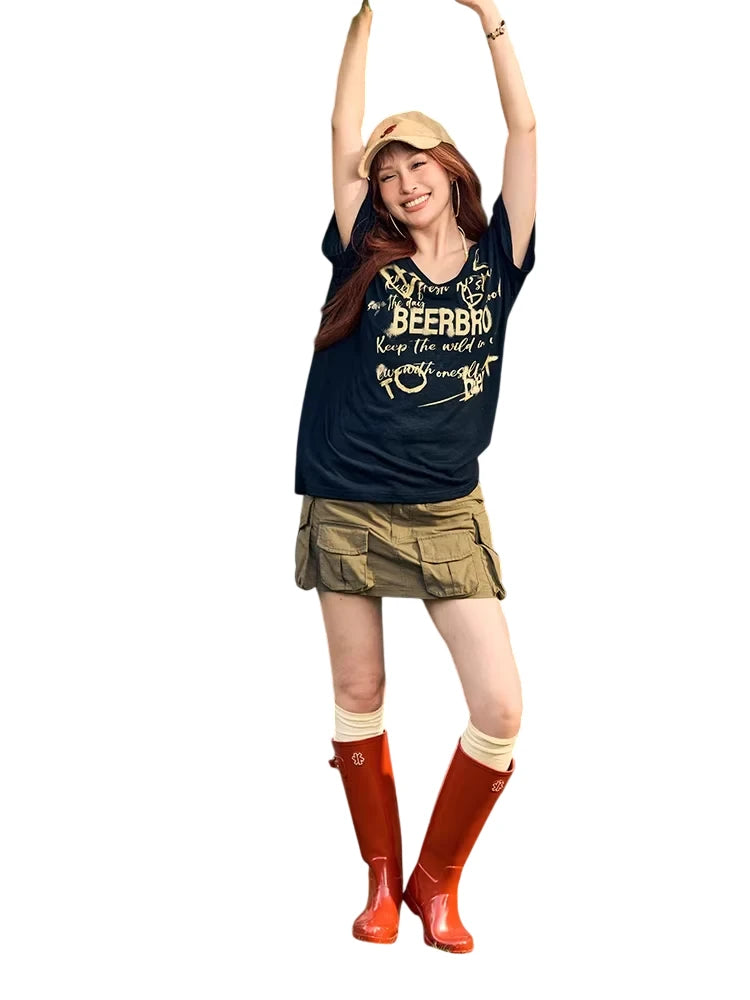 BeerBro Women’s Cargo Utility Mini Skirt with Multi-Pockets