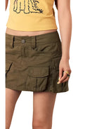 Stay stylish and functional this summer with this women's cargo utility mini skirt. Designed with a stone-washed finish and rugged texture, this skirt features multiple spacious pockets on both sides for a practical, on-the-go look. Seam detailing and structured fabric add dimension, while the front button and zipper closure ensure a secure fit. Perfect for casual outings, pair it with your favorite crop tops or tanks for an effortless, trendy ensemble.