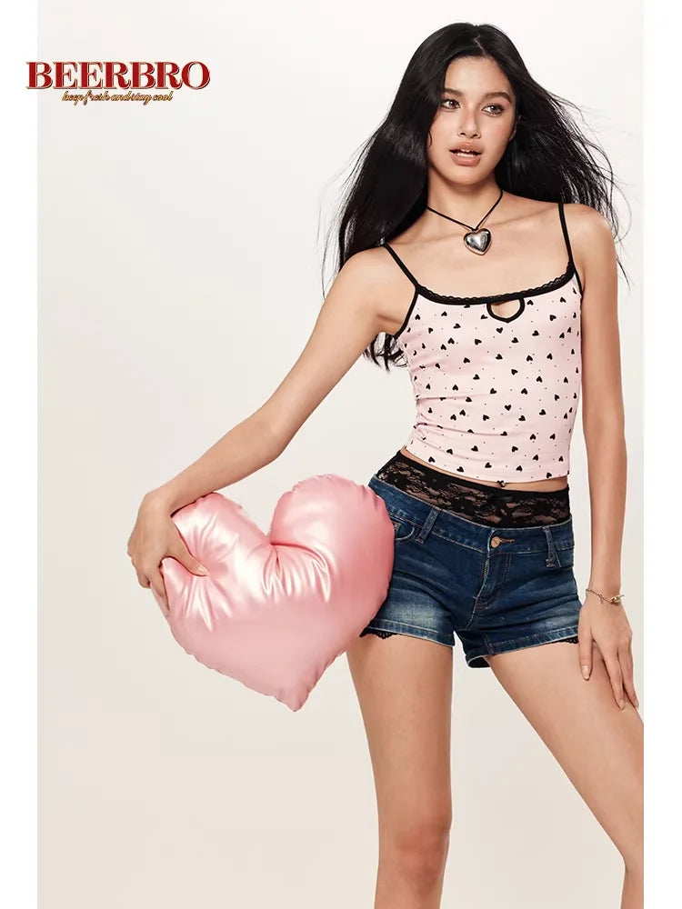 BeerBro Women’s Heart Print Slim Fit Camisole Top – Summer 2024