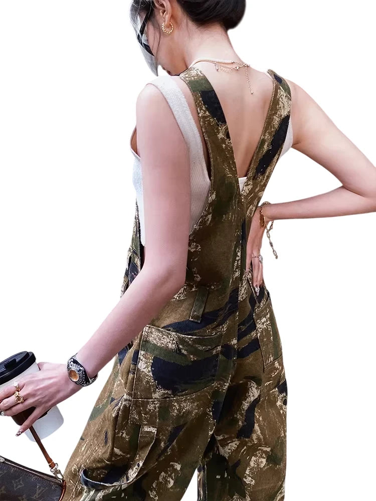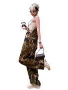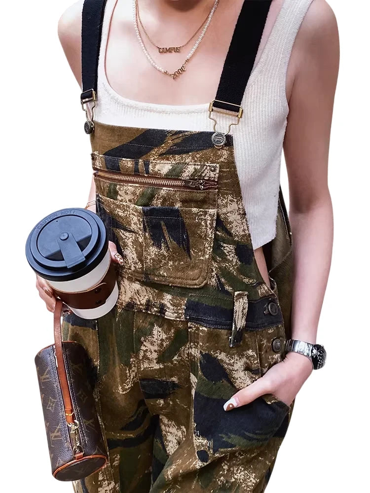 BeerBro Women's Camouflage High-Waisted Wide-Leg Overalls - Street Style Cargo Pants