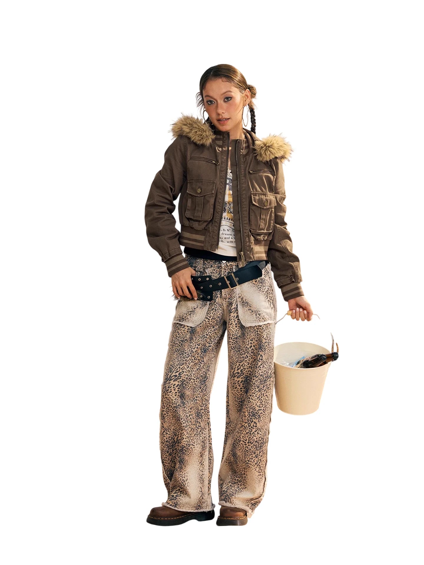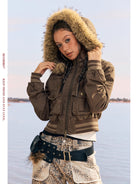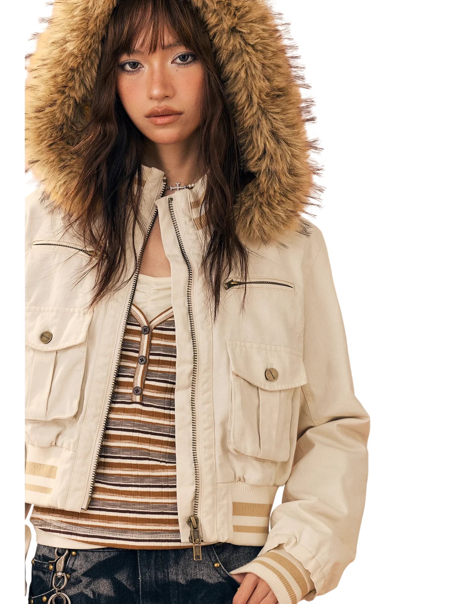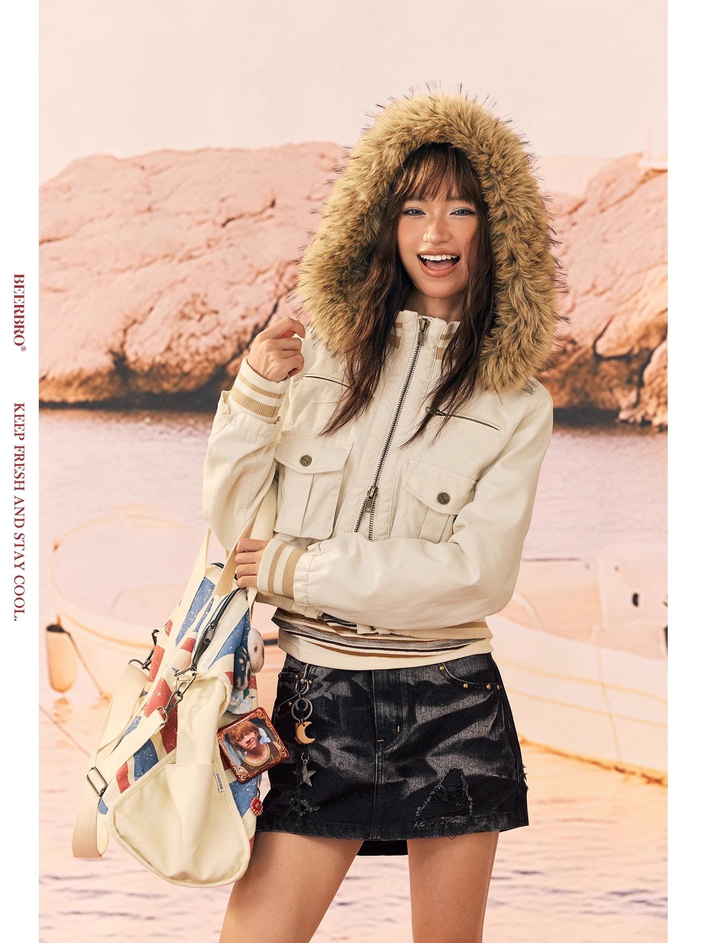 BeerBro Women's Cotton Short Jacket with Detachable Faux Fur Hood