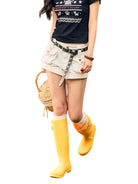 Upgrade your warm-weather wardrobe with these women's high-waisted cotton utility shorts, perfect for casual summer days. Crafted from lightweight slub cotton fabric and garment-washed for extra softness, these shorts offer comfort and effortless style. Featuring two oversized front flap pockets with gold-tone button closures, decorative belt loops, and a chic beige hue, they combine functionality with fashion. Ideal for pairing with your favorite tops and sandals for a relaxed outdoor look.