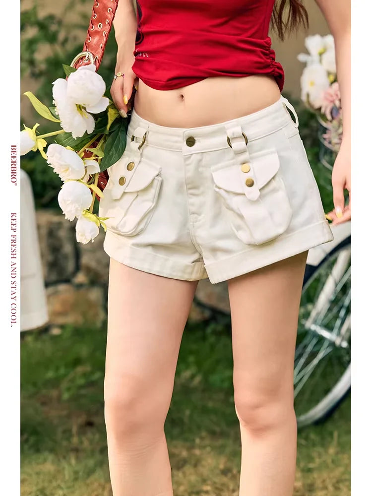 BeerBro Women's Cotton Utility Shorts with Front Flap Pockets - Summer Essential