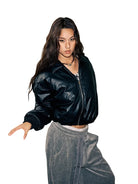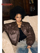 Stay warm and stylish through the colder seasons with this women's faux leather bomber jacket. Designed with a soft, thick cotton-padded interior, it offers comfort and insulation, making it perfect for autumn and winter wear. The short, oversized fit and pointed collar lend a modern street style look, while the front zipper adds functionality and flair. Ideal for casual indoor or outdoor settings, this jacket pairs effortlessly with your favorite jeans or trousers.