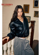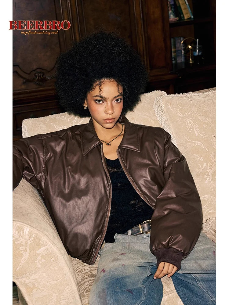 BeerBro Women's Faux Leather Cotton-Padded Bomber Jacket - Autumn Winter