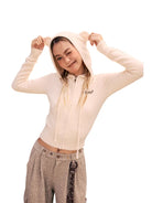 Stay warm and stylish with this cozy fuzzy hooded sweater for women. Designed for autumn and winter, this soft fleece hoodie features adorable bear ears on the hood and subtle chest embroidery for added charm. Its zip-up front and plush texture make it perfect for casual, everyday wear with a playful twist.