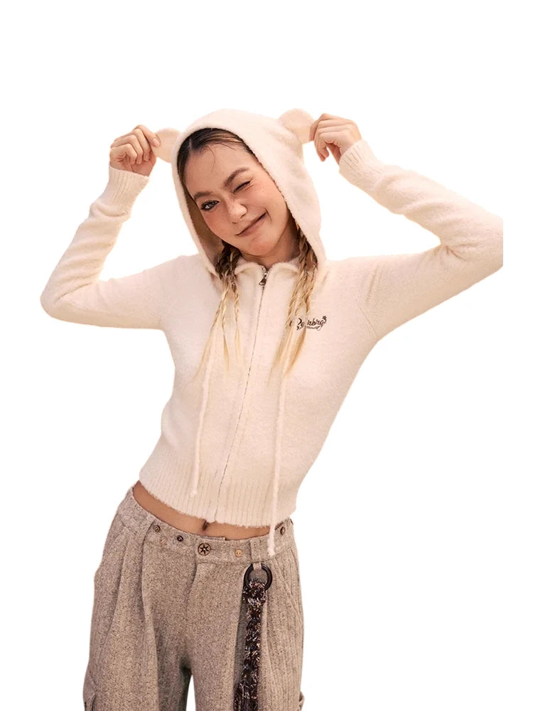 BeerBro Women's Fuzzy Bear Ear Hooded Sweater - Autumn Winter