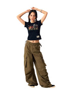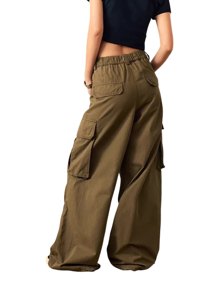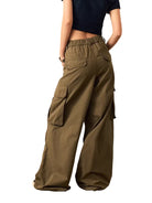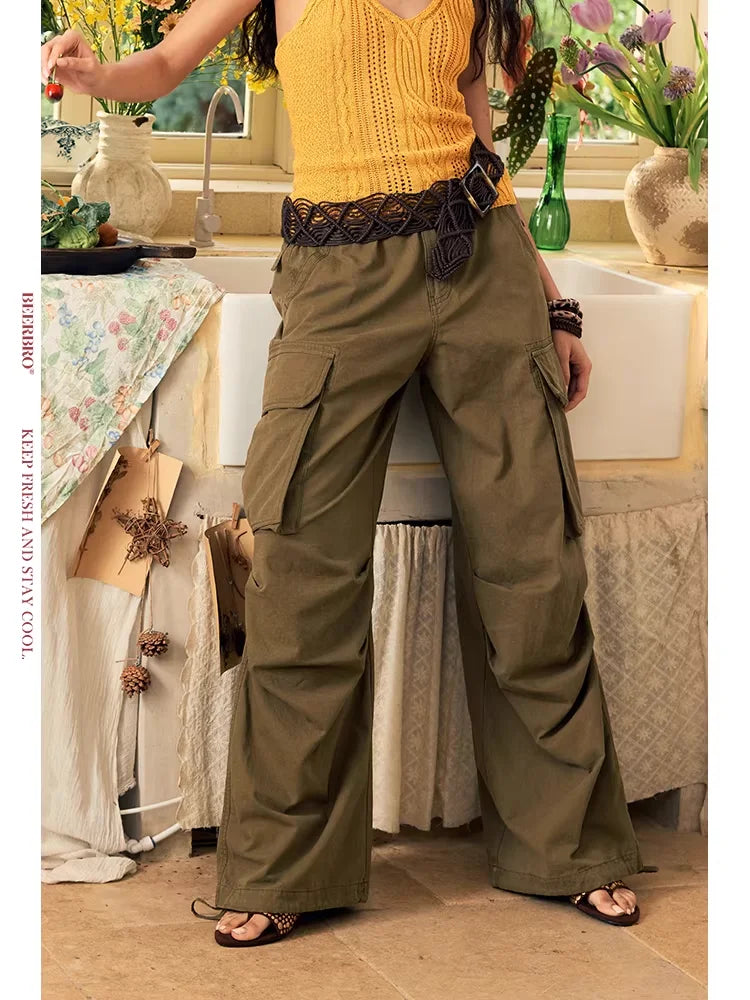 BeerBro Women's Garment-Washed Cotton Cargo Pants with Multi Pockets