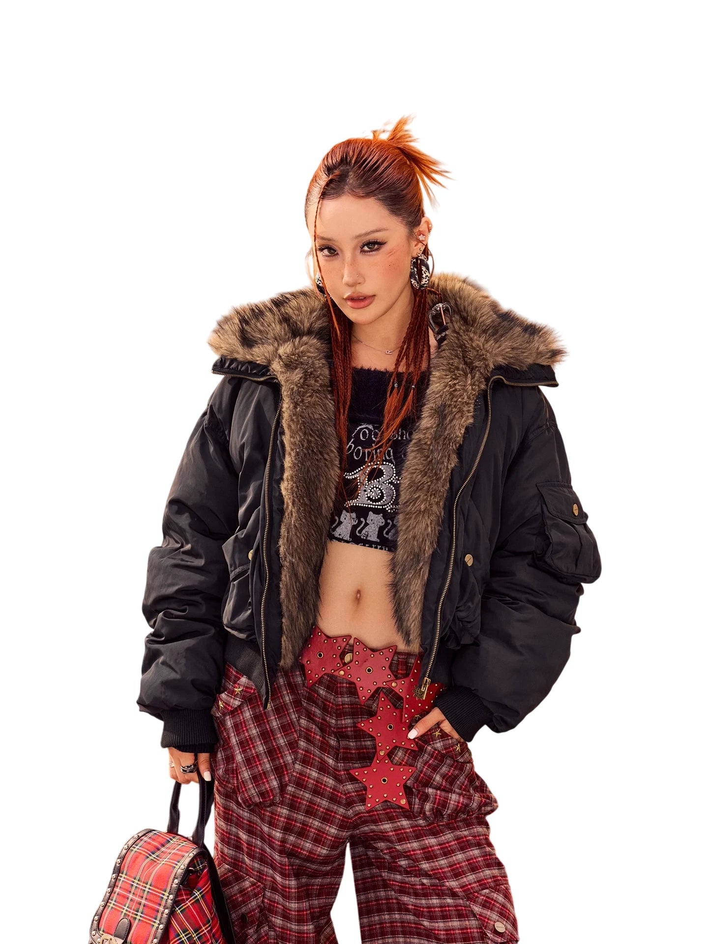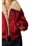 Elevate your winter wardrobe with this women's high loft jacket, designed for bold style and cozy warmth. Featuring a luxurious faux fur collar and filled with 90% white duck down, this bomber-style jacket offers both fashion and function. Ideal for chilly days, it adds a statement touch while keeping you comfortably insulated.