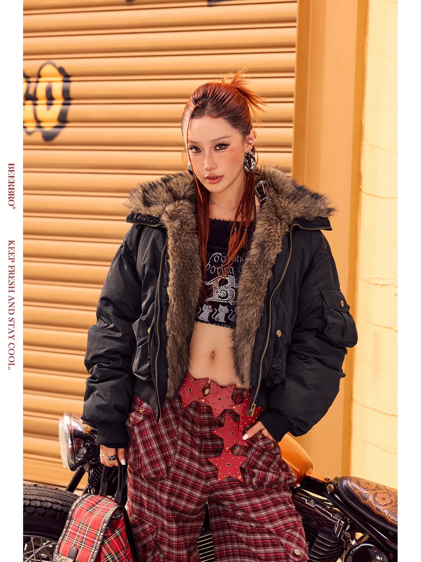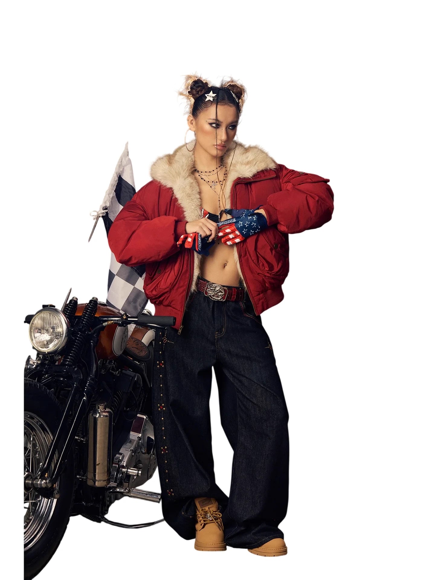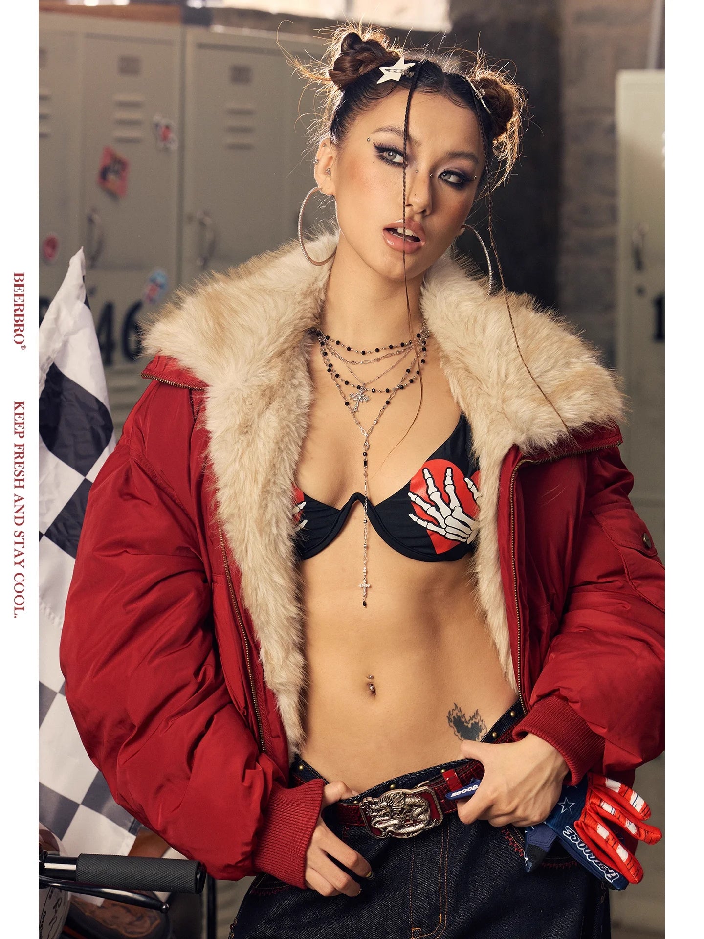 BeerBro Women's High Loft Down Jacket with Faux Fur Collar