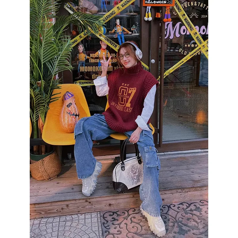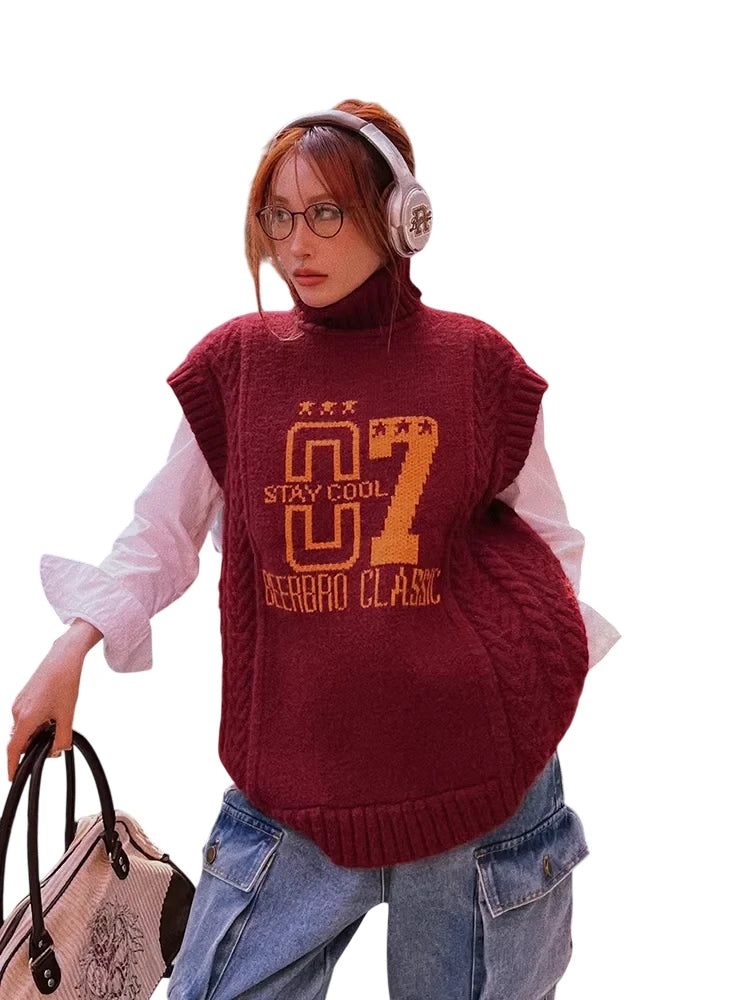 Stay warm and stylish with this women's high neck knitted vest, designed for the autumn and winter seasons. Featuring a sleeveless, loose fit with a retro-inspired look, this versatile layer is perfect for pairing over shirts or tops. The textured knit provides cozy comfort, making it ideal for cool-weather layering with a fashion-forward edge.