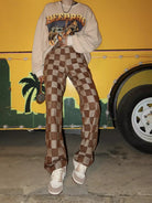 BeerBro Women's High-Waisted Checkered Wide-Leg Pants