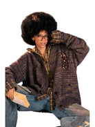 BeerBro Women's Leopard Pocket Distressed Wool Cardigan Sweater