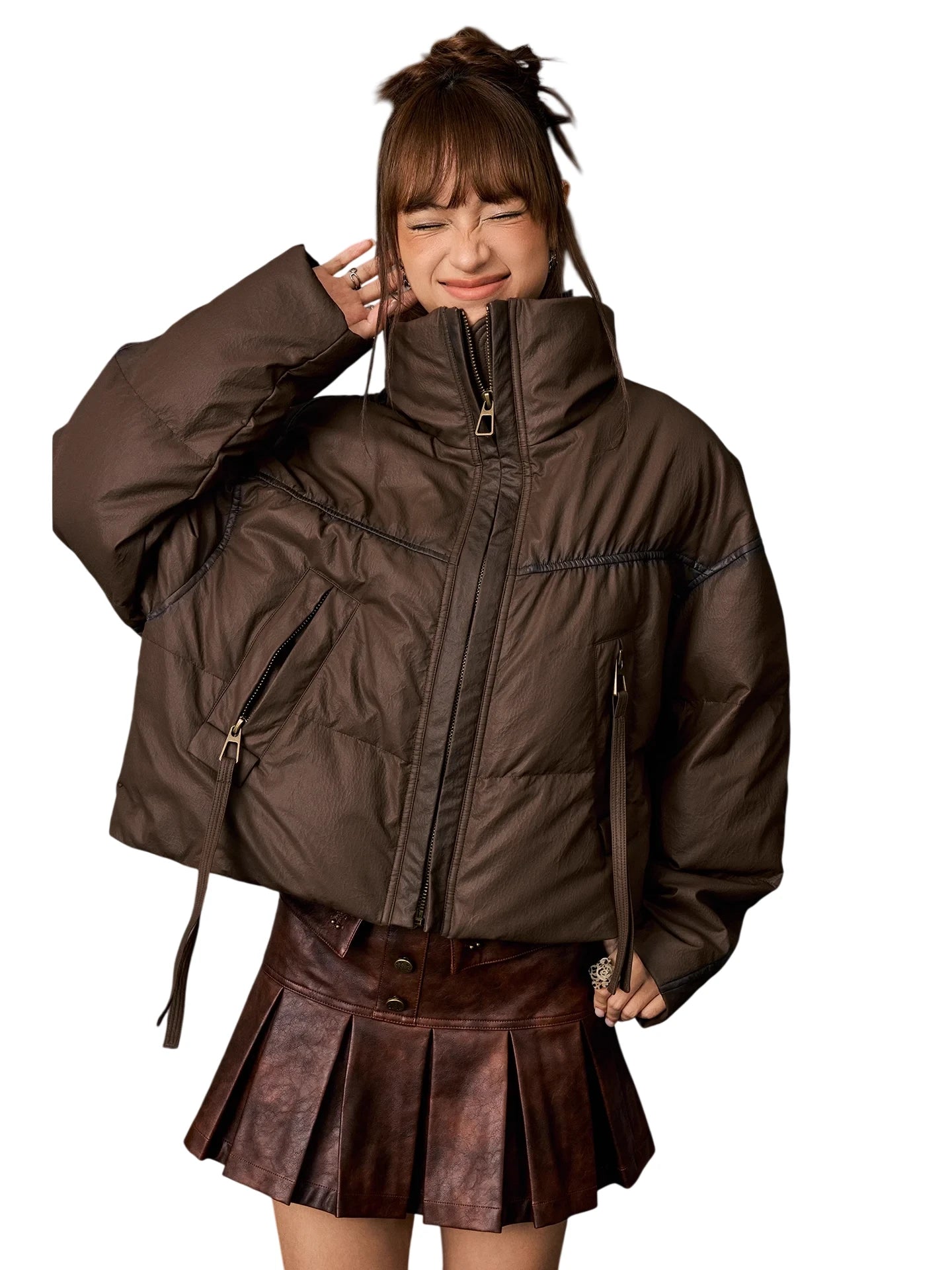Stay warm and stylish with this women's oversized duck down winter jacket. Featuring a windproof design and ultra-soft duck down filling, this jacket provides superior insulation against cold weather. A large ribbed collar and front zip closure add both comfort and contemporary flair, while spacious flap pockets offer functionality for urban adventures.