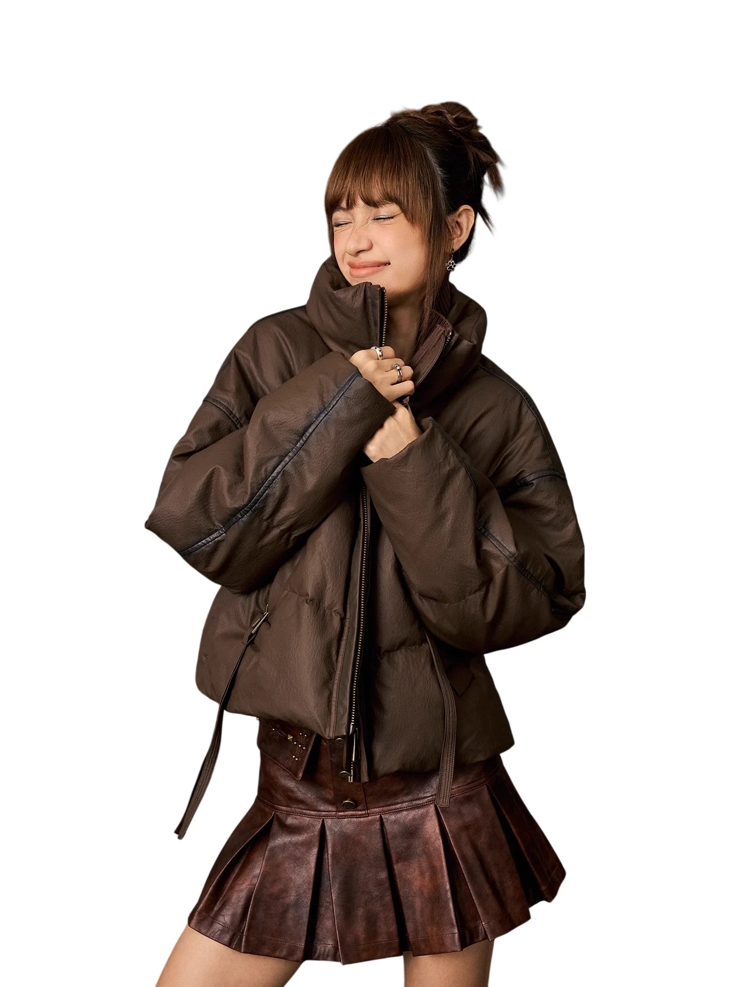 Designed with a slightly glossy finish, this winter essential combines fashion and practicality, making it perfect for city wear during chilly months.