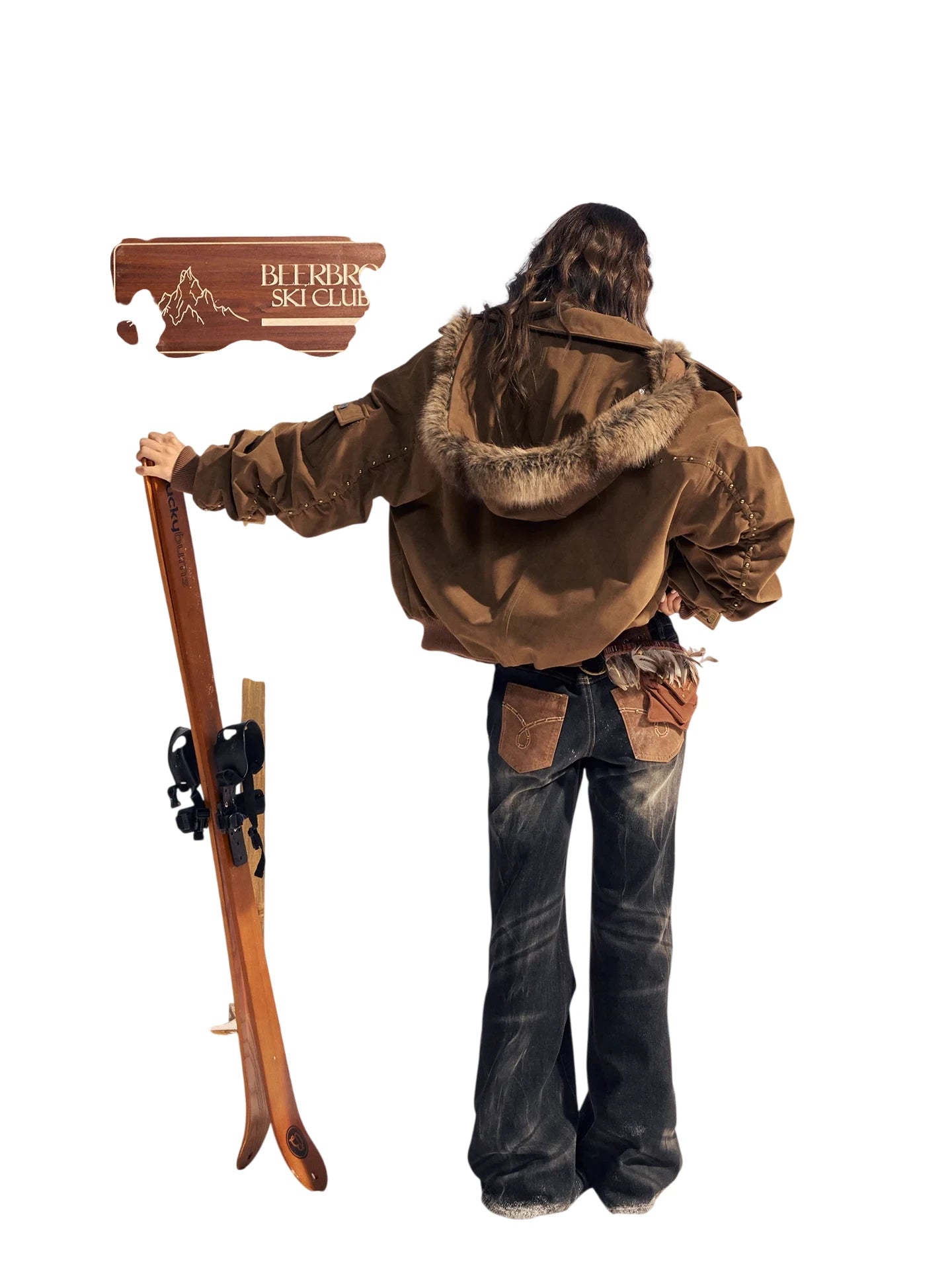 BeerBro Women's Retro Flared Denim Pants with Suede Accents and Rhinestone Details