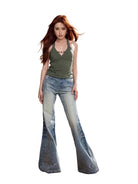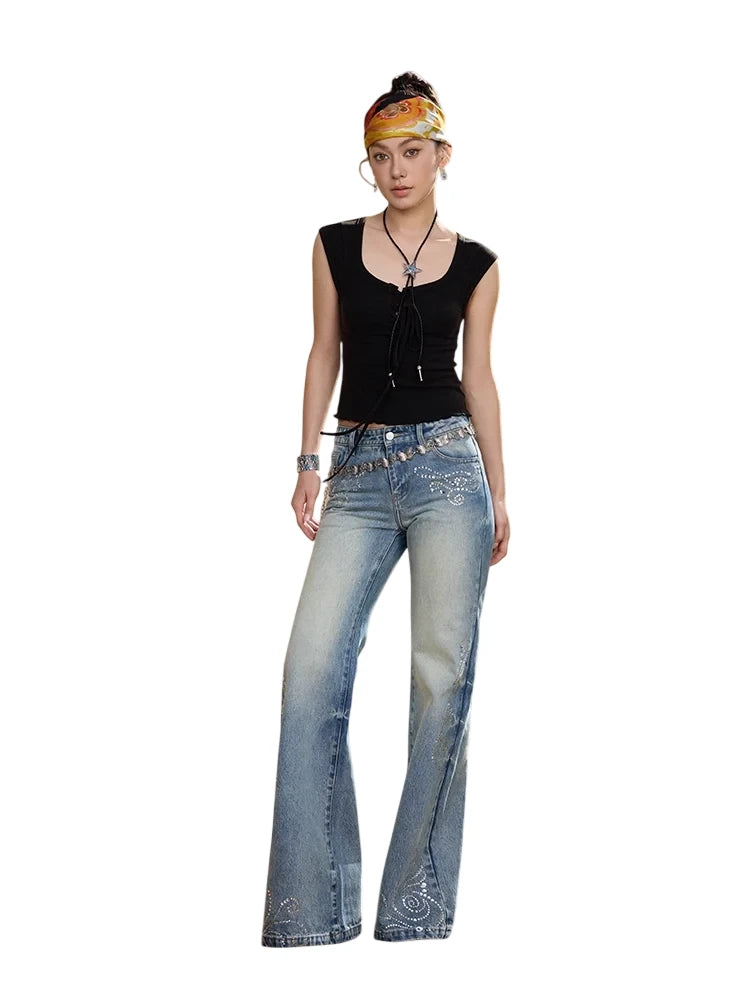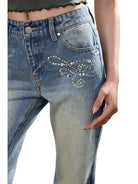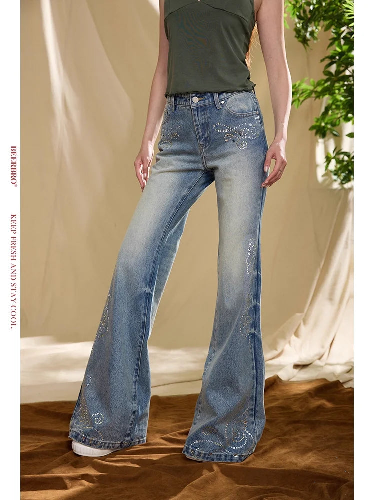 BeerBro Women's Rhinestone Flared Denim Jeans