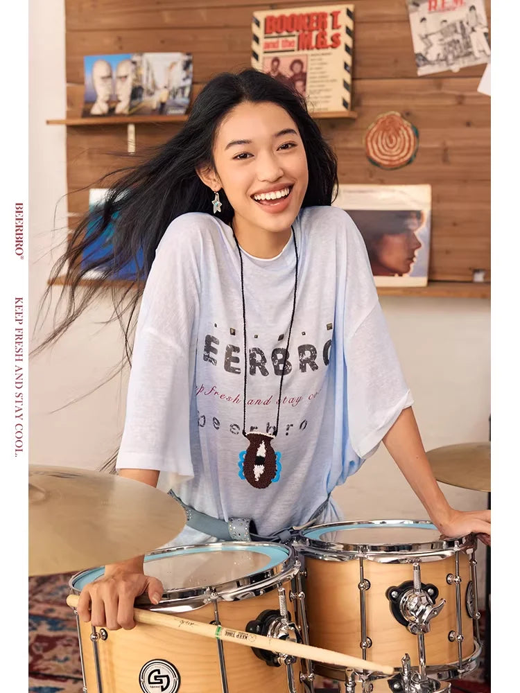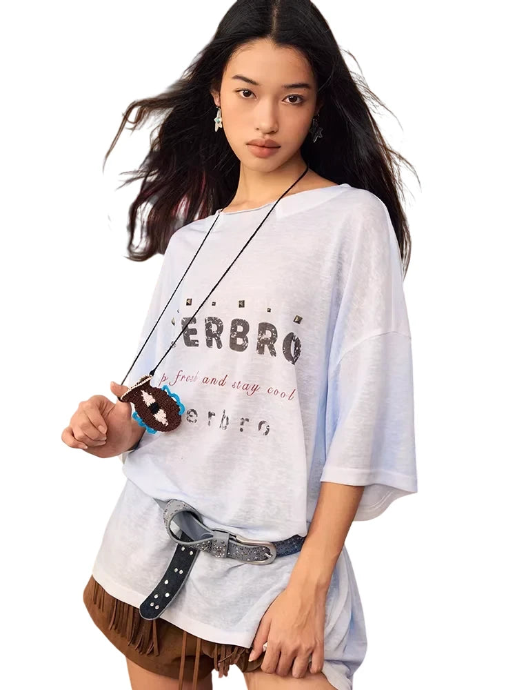 BeerBro Women's Summer Loose Sheer Spray-Dyed T-Shirt