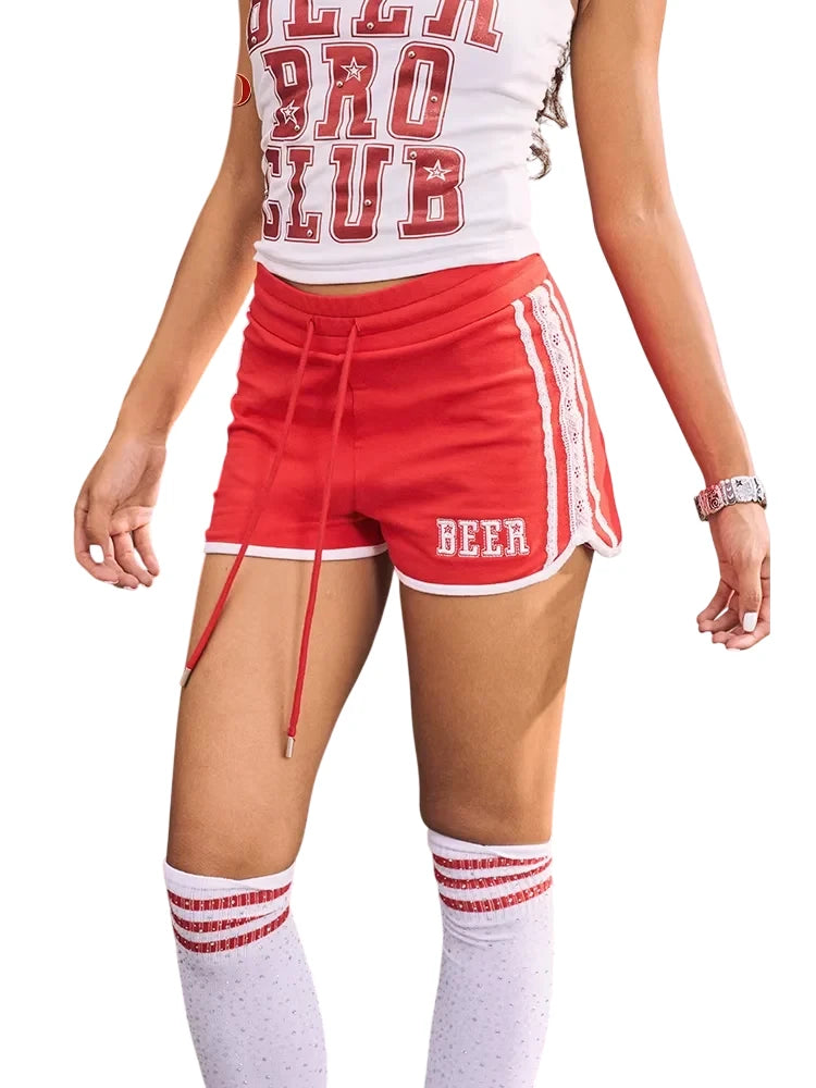 BeerBro Women's Y2K Lace Drawstring Mini Sports Shorts