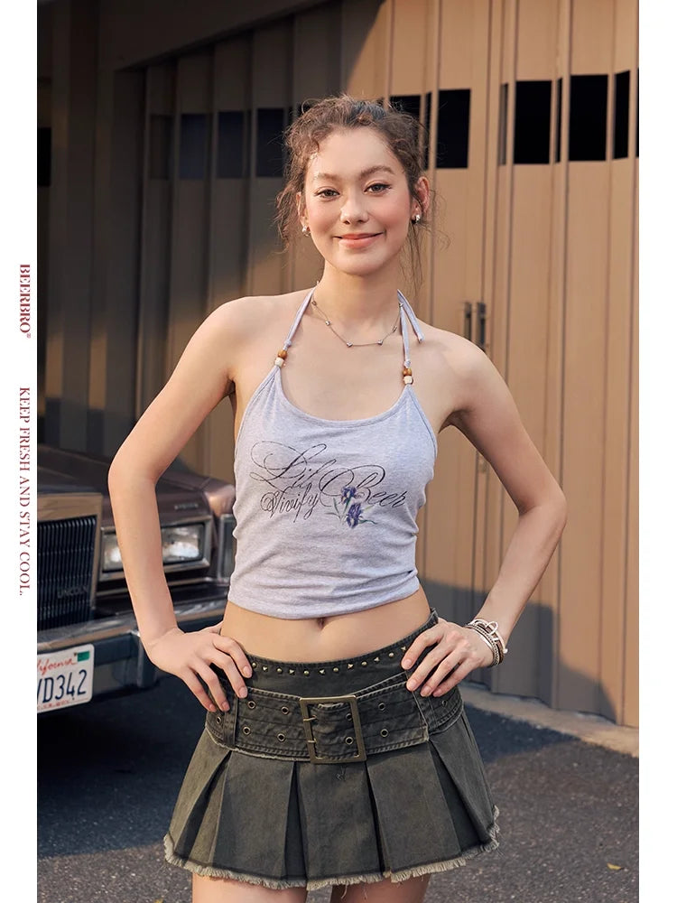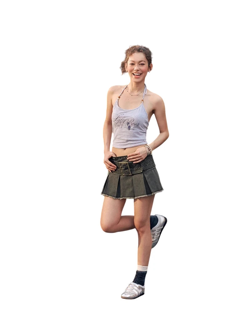 BeerBro Retro Plaid Low-Waist A-Line Skirt with Ruffled Waist