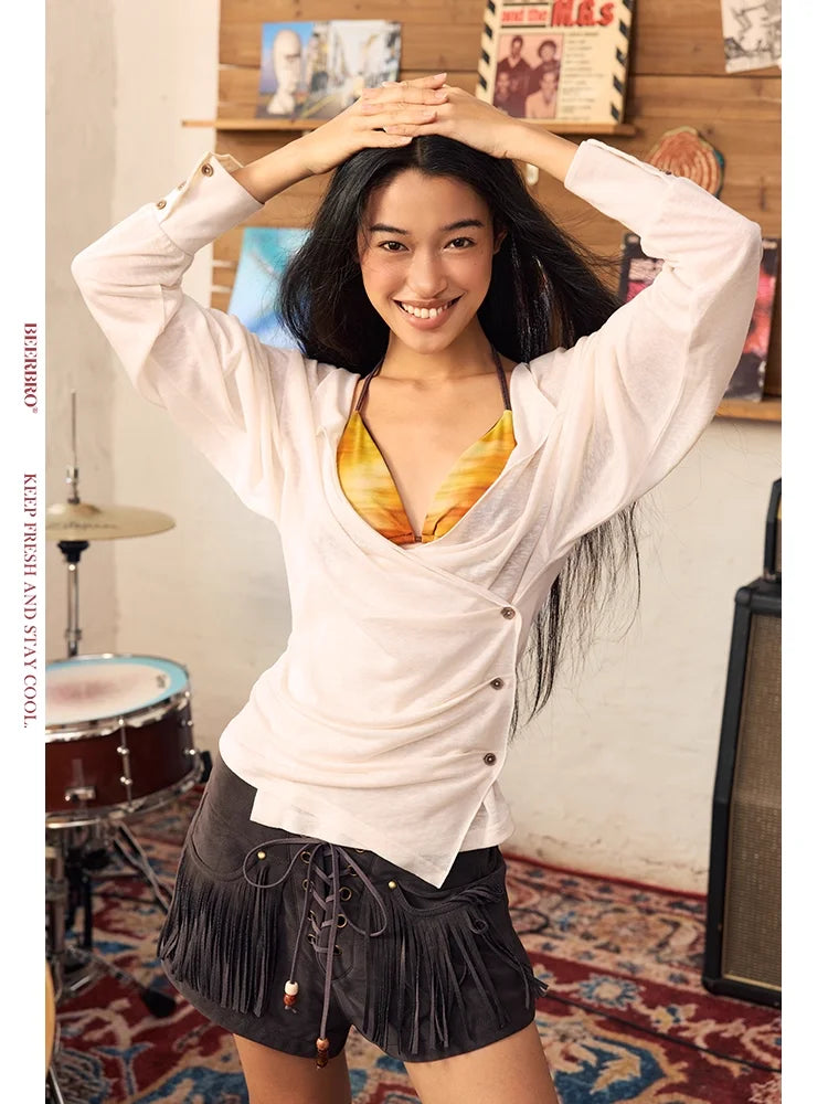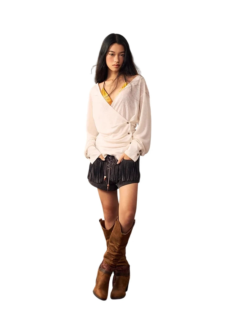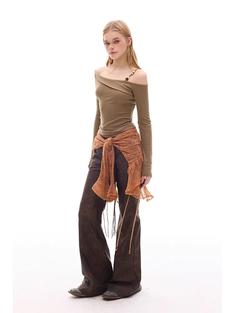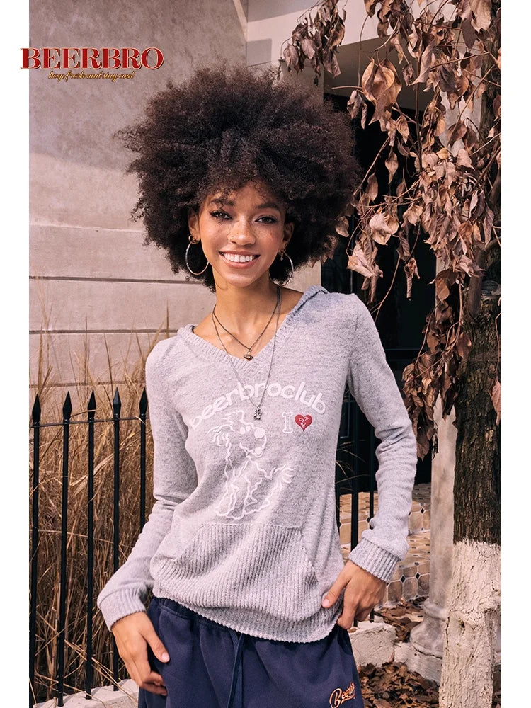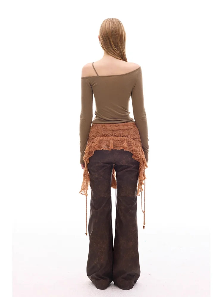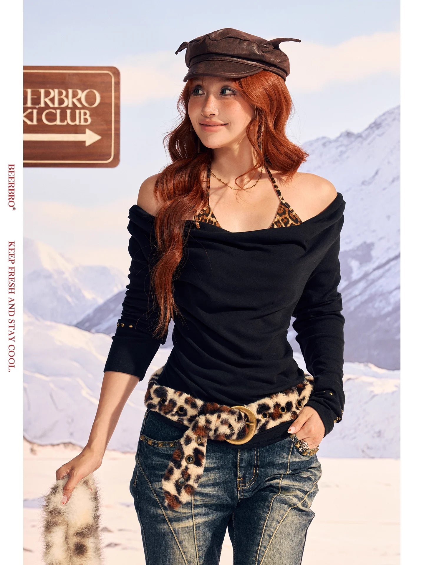 BeerBro Off-Shoulder Colorblock Faux Mink Knit Sweater