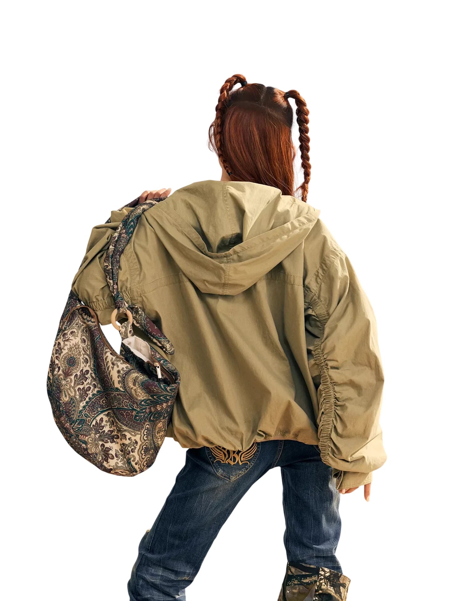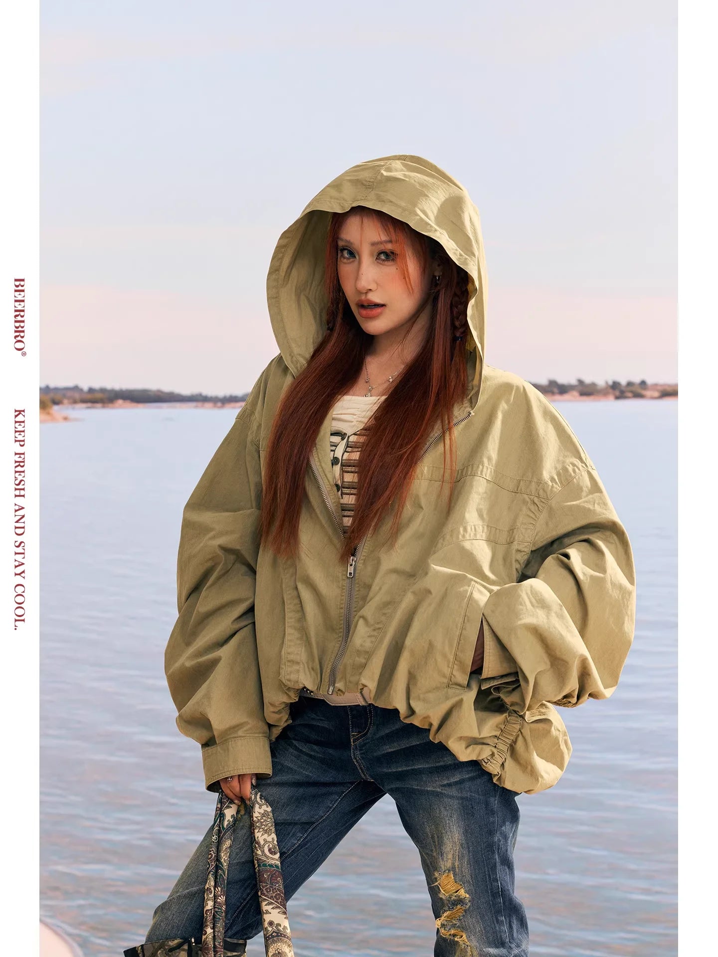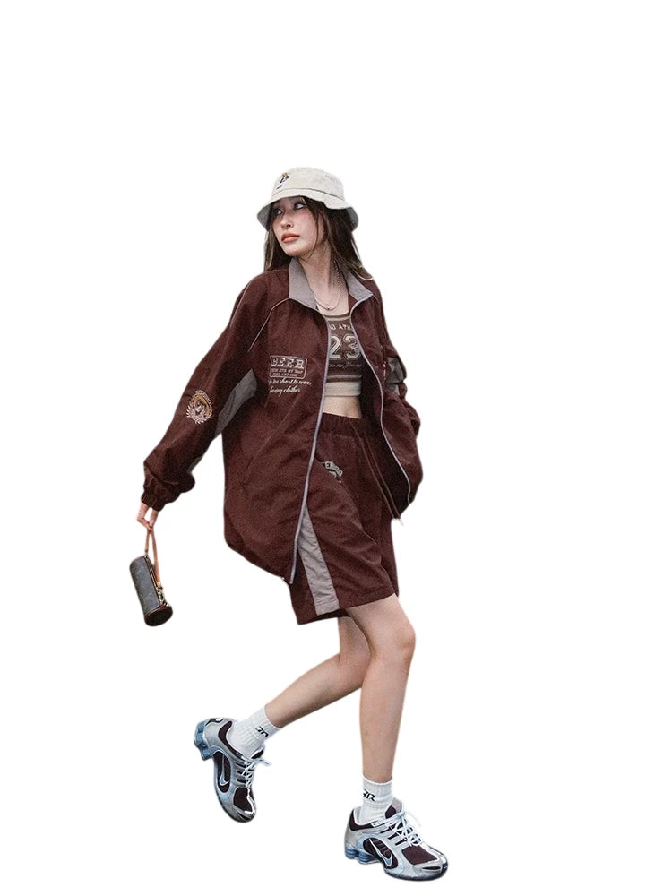 BeerBro Women's Crinkled Windbreaker Hoodie and Shorts Set
