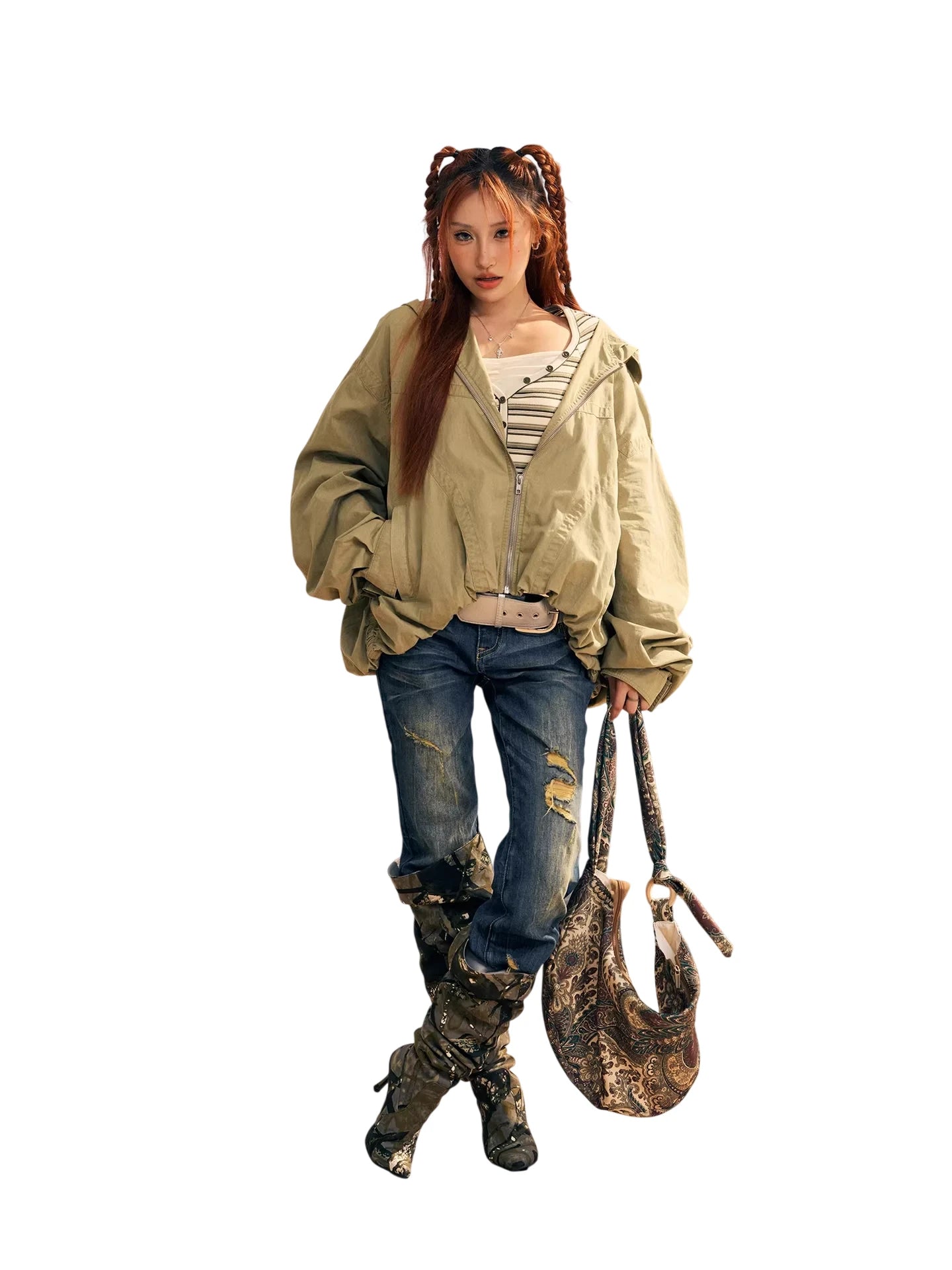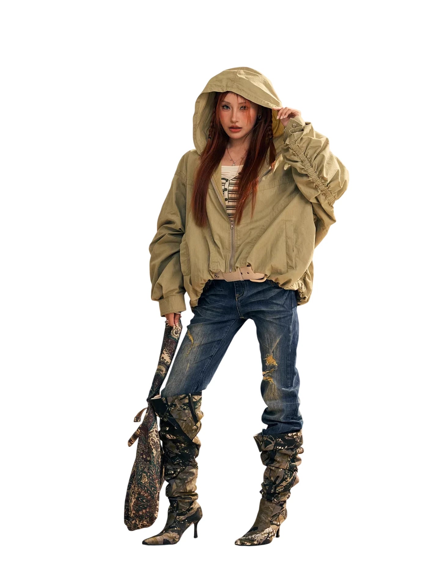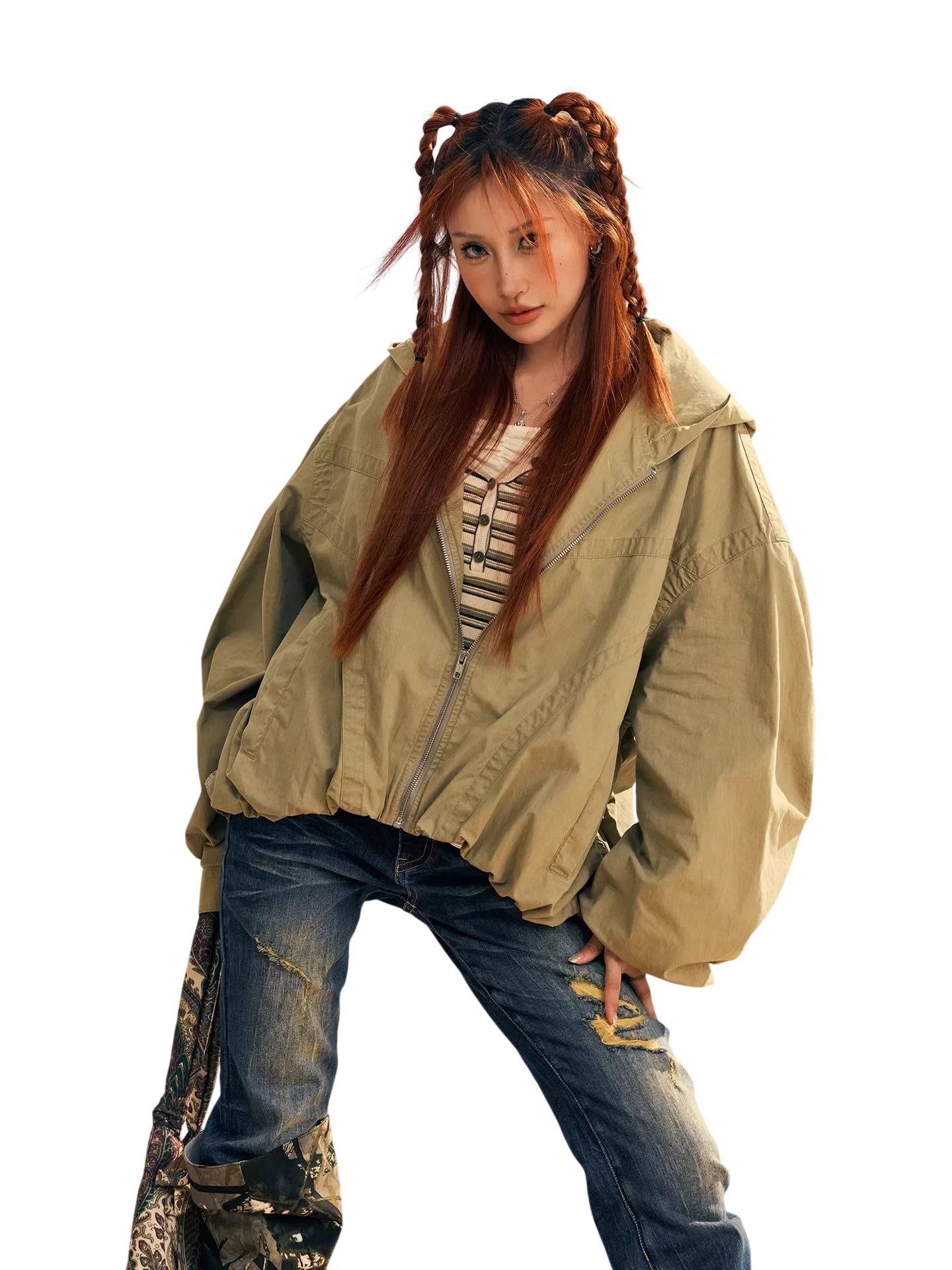 BeerBro Women's Crinkled Windbreaker Hoodie and Shorts Set