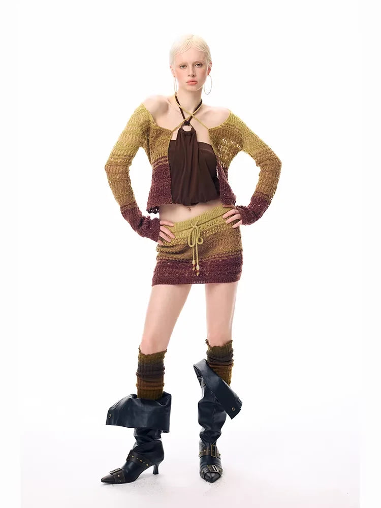 BeerBro Gradient Mohair Knit Vest and Skirt Set
