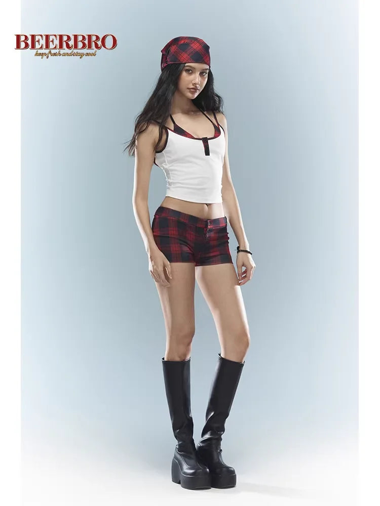 BeerBro Women's Plaid Three-Piece Summer Lounge Set