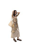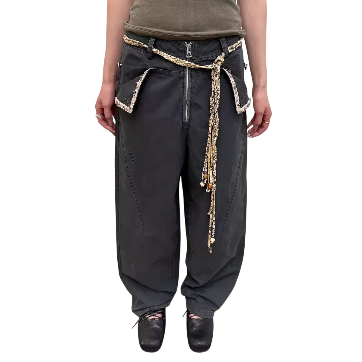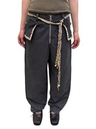 This handcrafted braided waist belt features intricate beadwork and metallic accents, offering a stylish and bohemian touch to any ensemble. Designed to be worn as an accessory over pants or dresses, this rope-style belt is tied loosely at the waist for a relaxed yet chic look. Ideal for women seeking unique and artisanal fashion details.