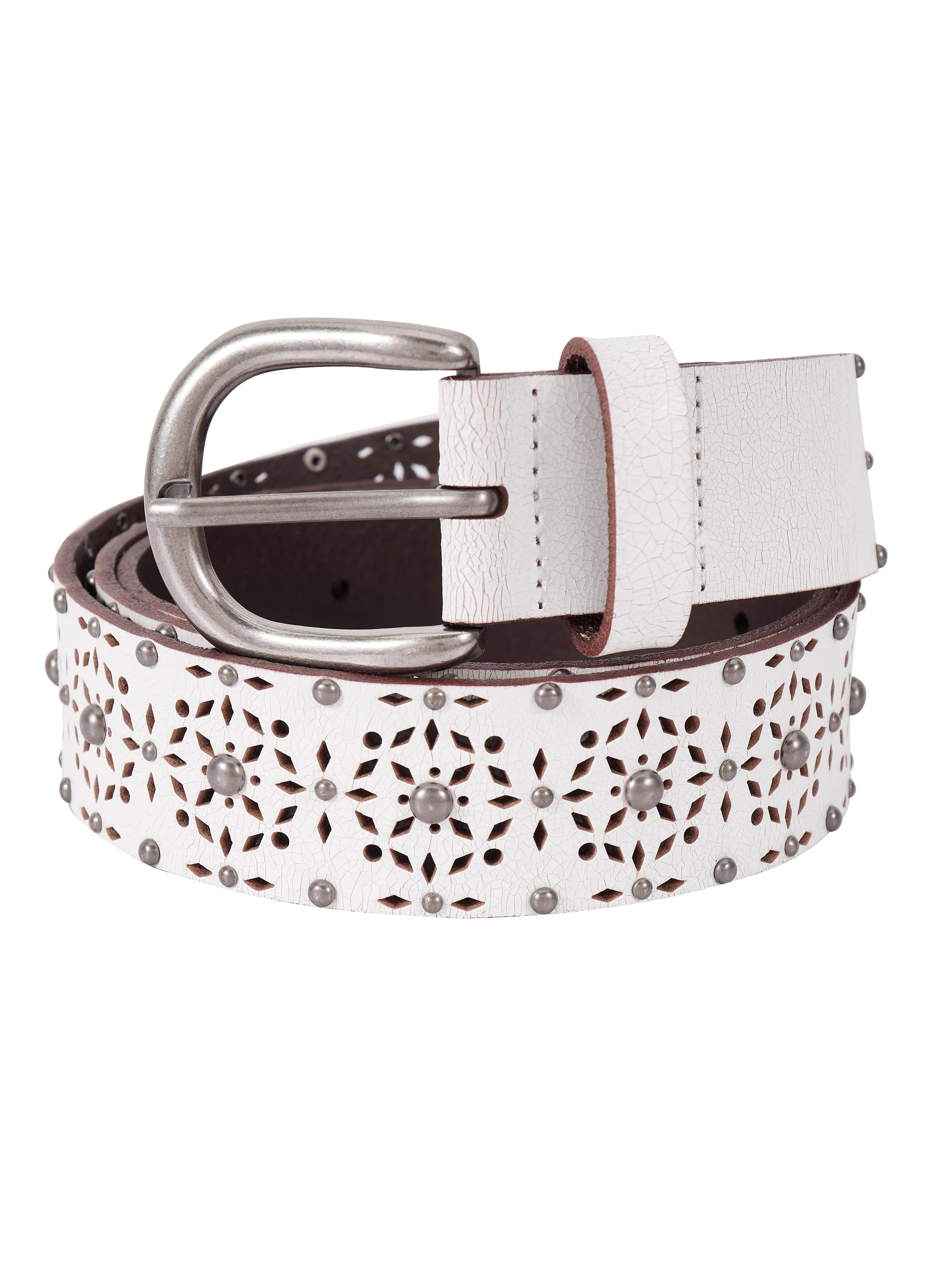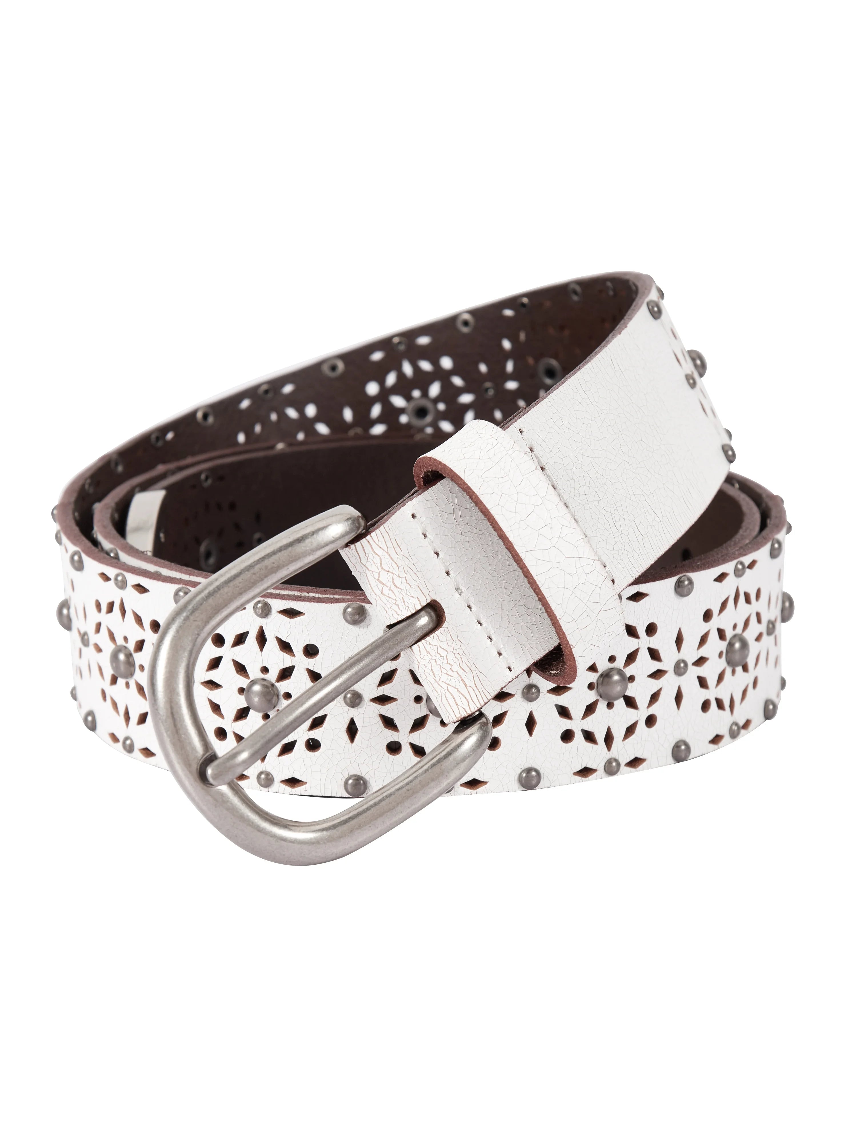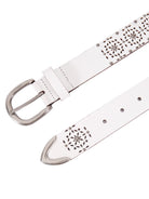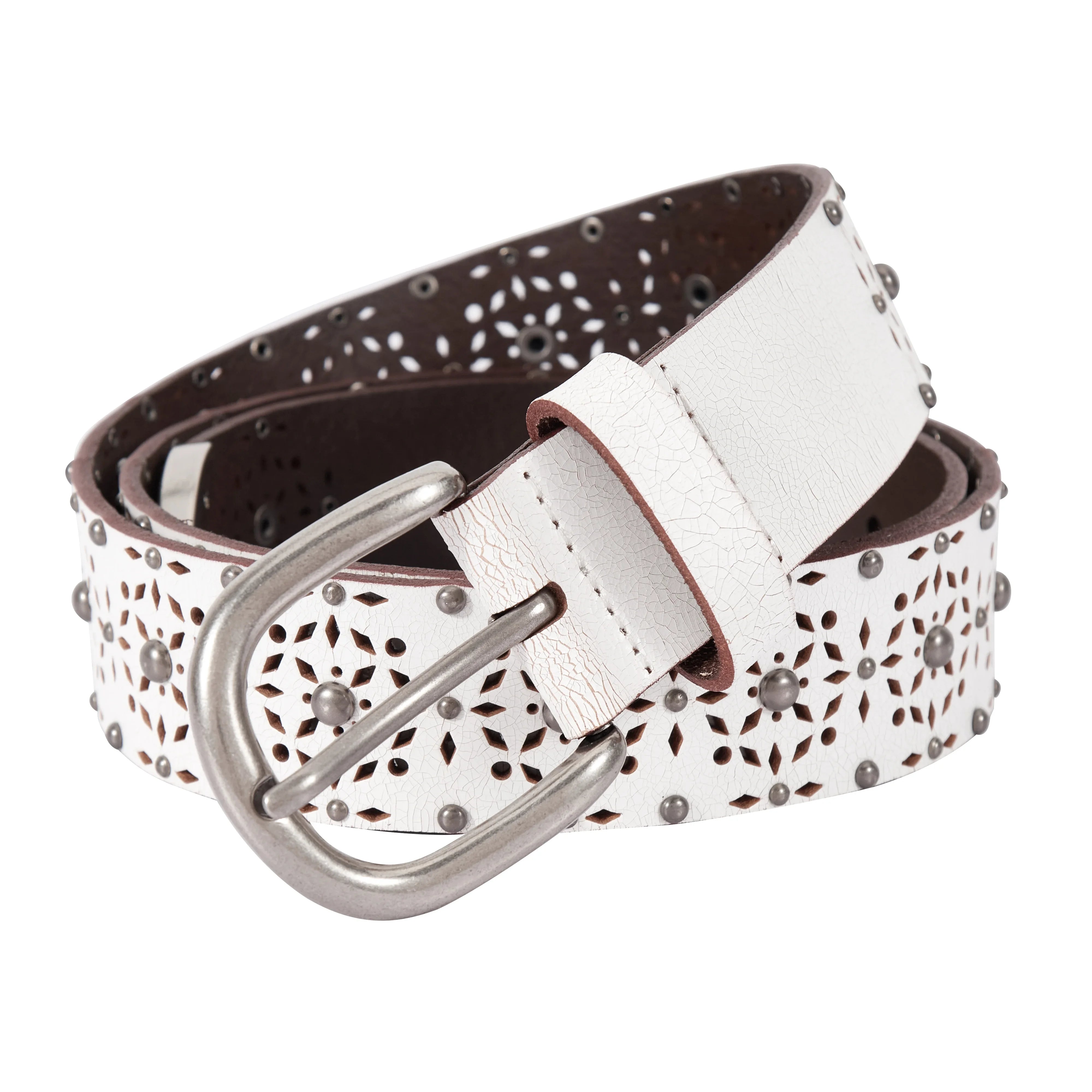 Retro 21 Women's Off-White Studded Floral Cutout Leather Belt