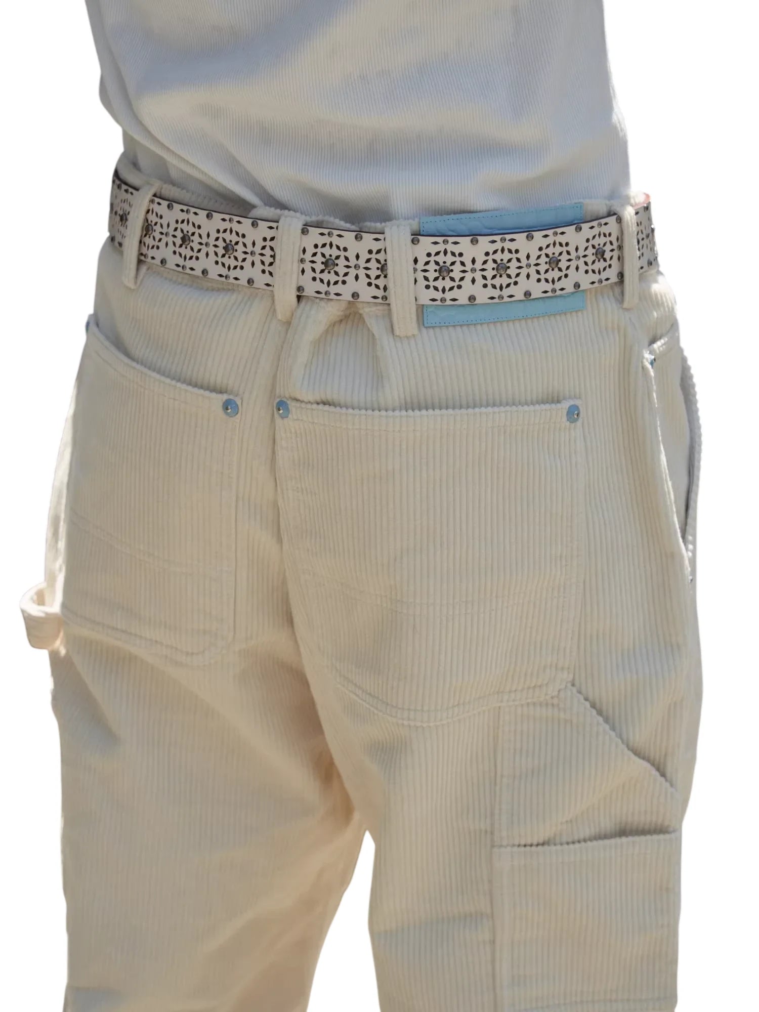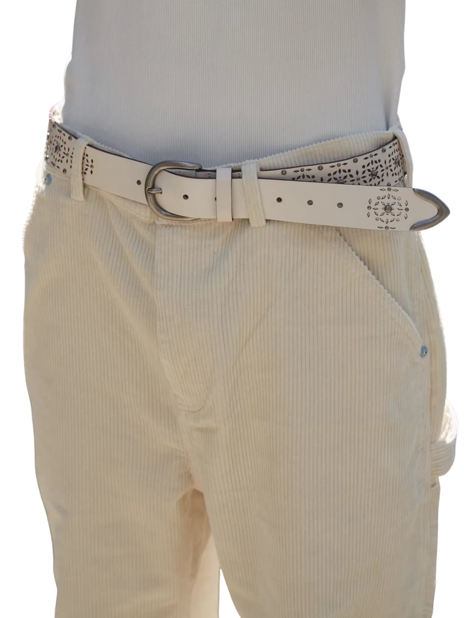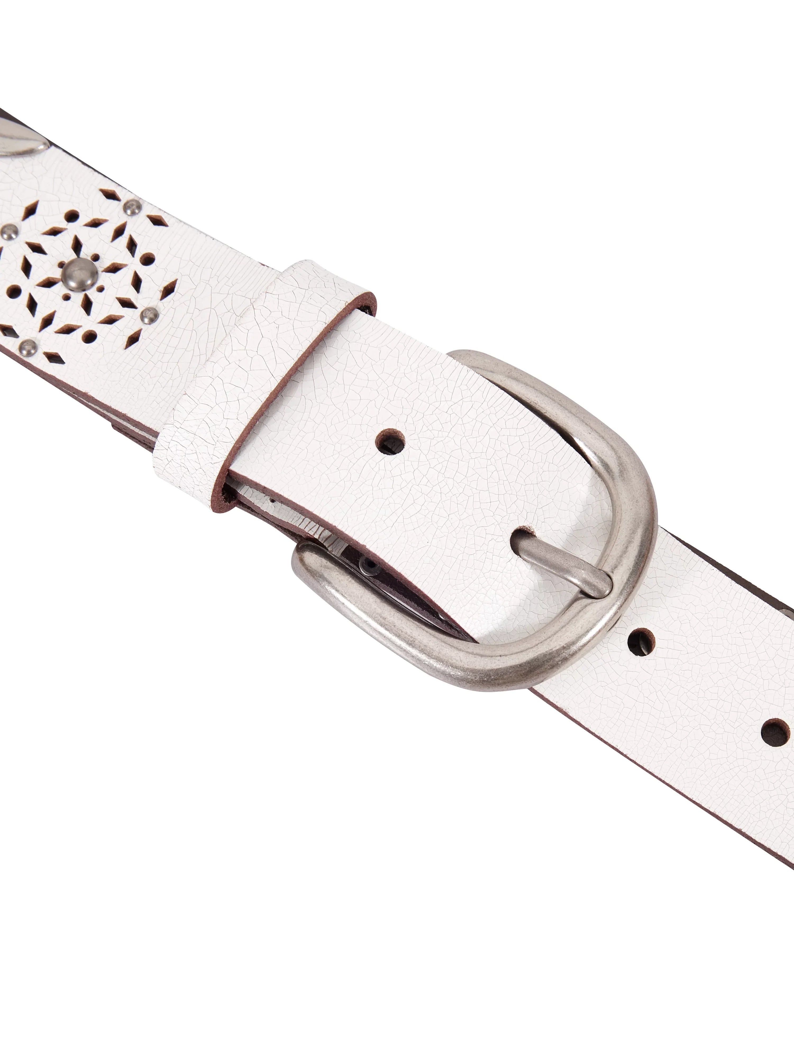 Retro 21 Women's Off-White Studded Floral Cutout Leather Belt