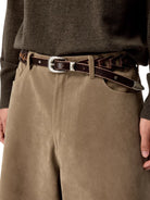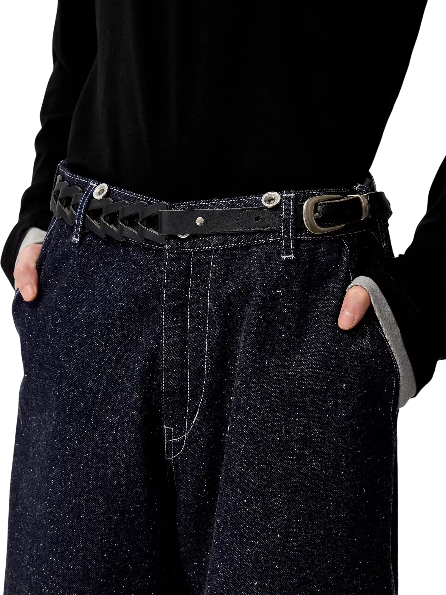 Elevate your accessories collection with this men's braided leather belt, crafted from high-quality first layer leather for long-lasting durability and style. Featuring a sophisticated woven design, this belt combines a rugged yet refined aesthetic with a contemporary gunmetal-toned single prong buckle. Available in black with a glossy finish and dark brown with contrast tan edges, it offers a timeless look suitable for both casual and formal wear.