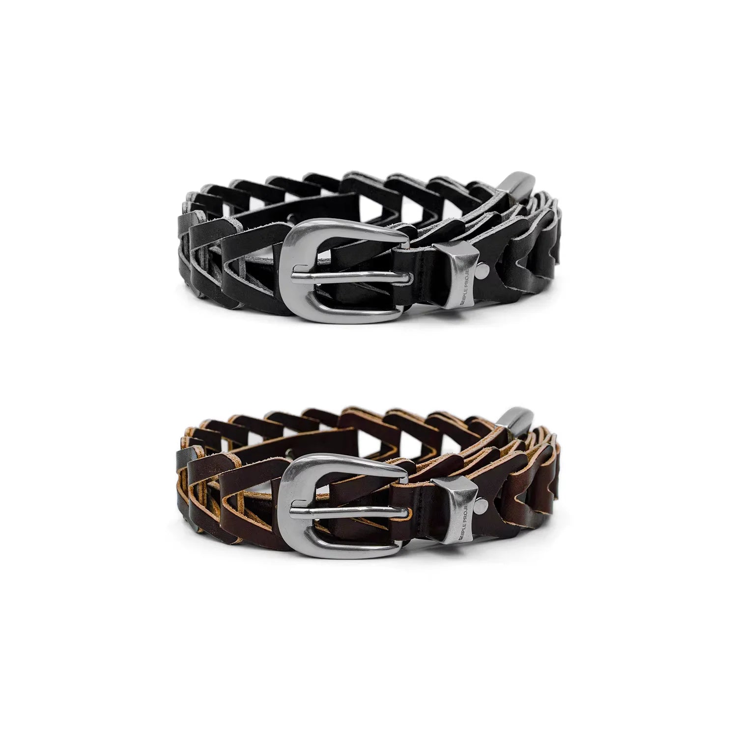Simple Project Men's Braided Leather Belt with Gunmetal Buckle