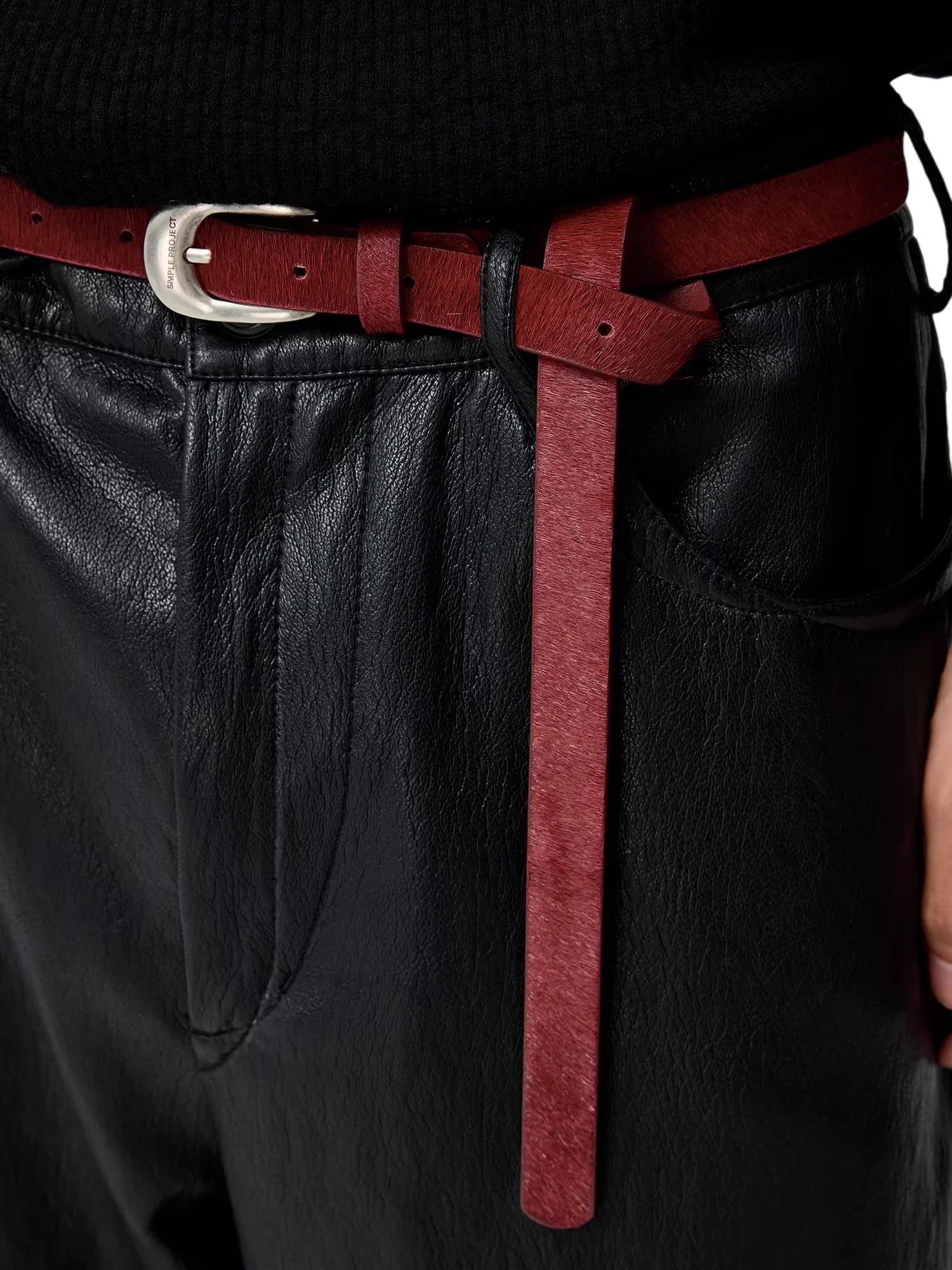 Red Perforated Belt With Distressed Buckle In Stock
