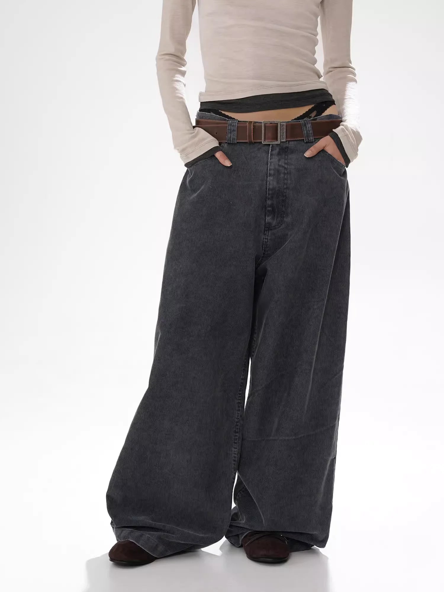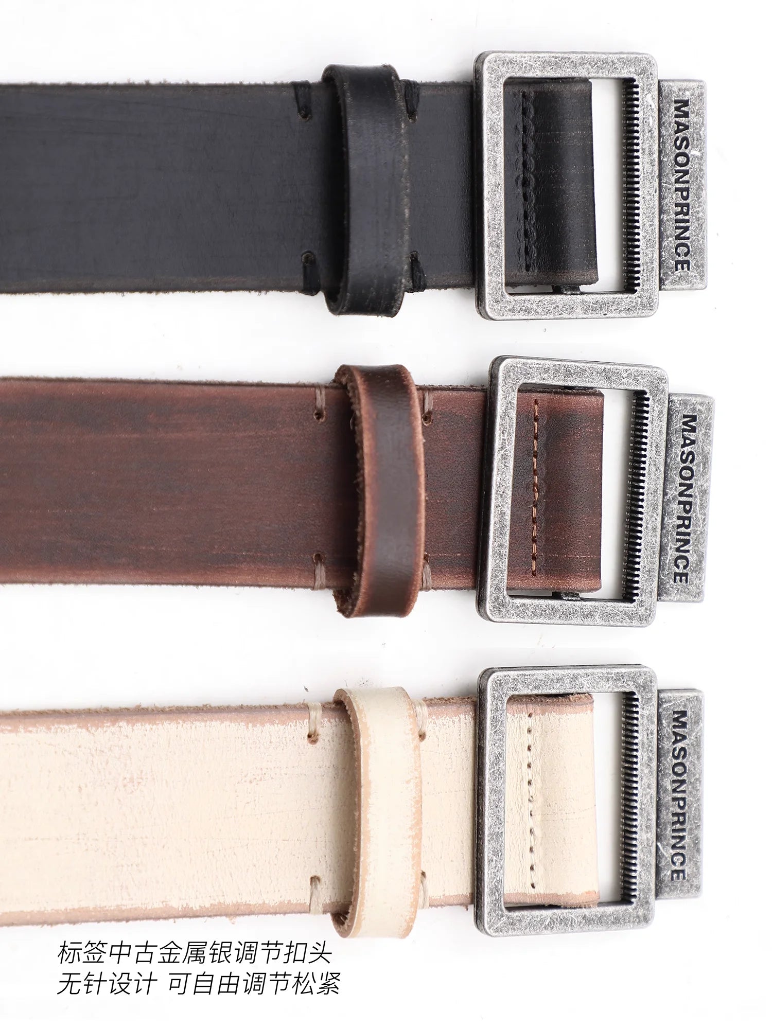 BLINDNOPLAN Full Grain Leather Studded Belt with Oversized Buckle