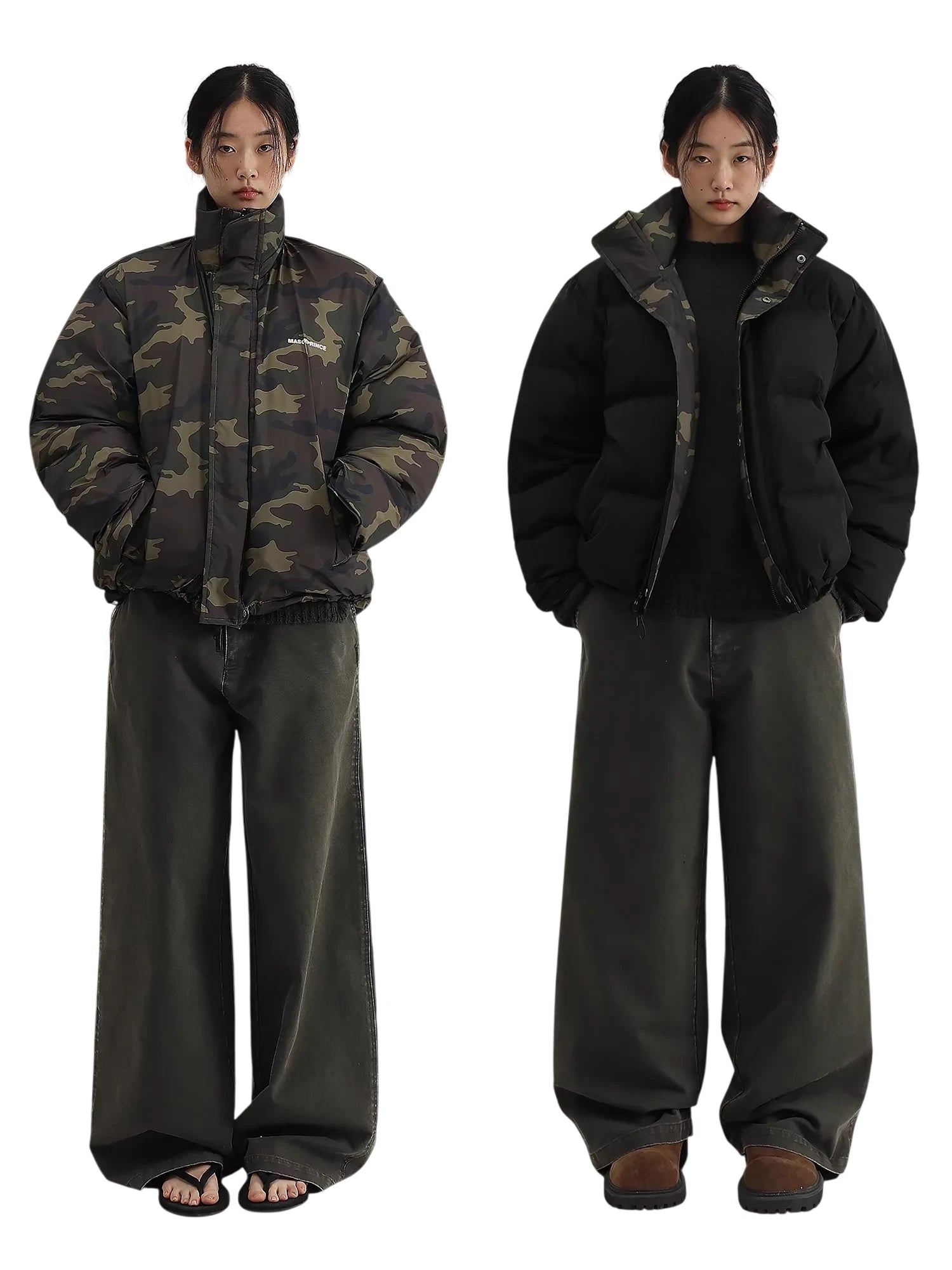 MASONPRINCE Reversible Camouflage Puffer Jacket with 90% White Duck Down