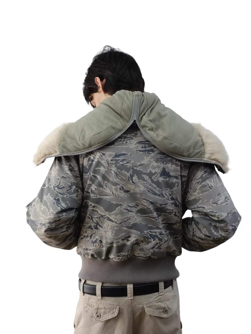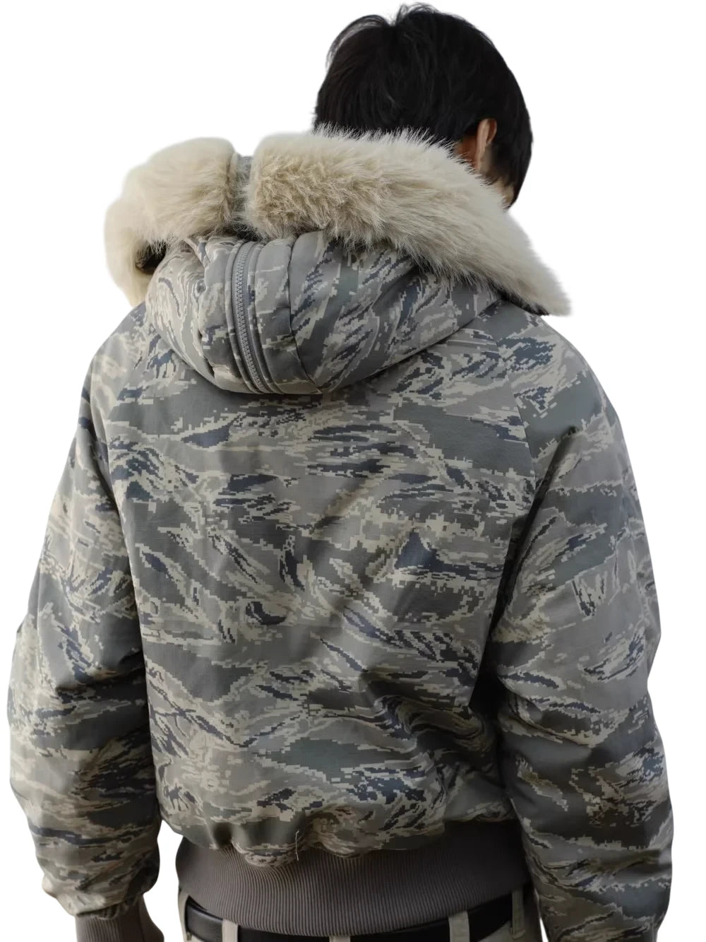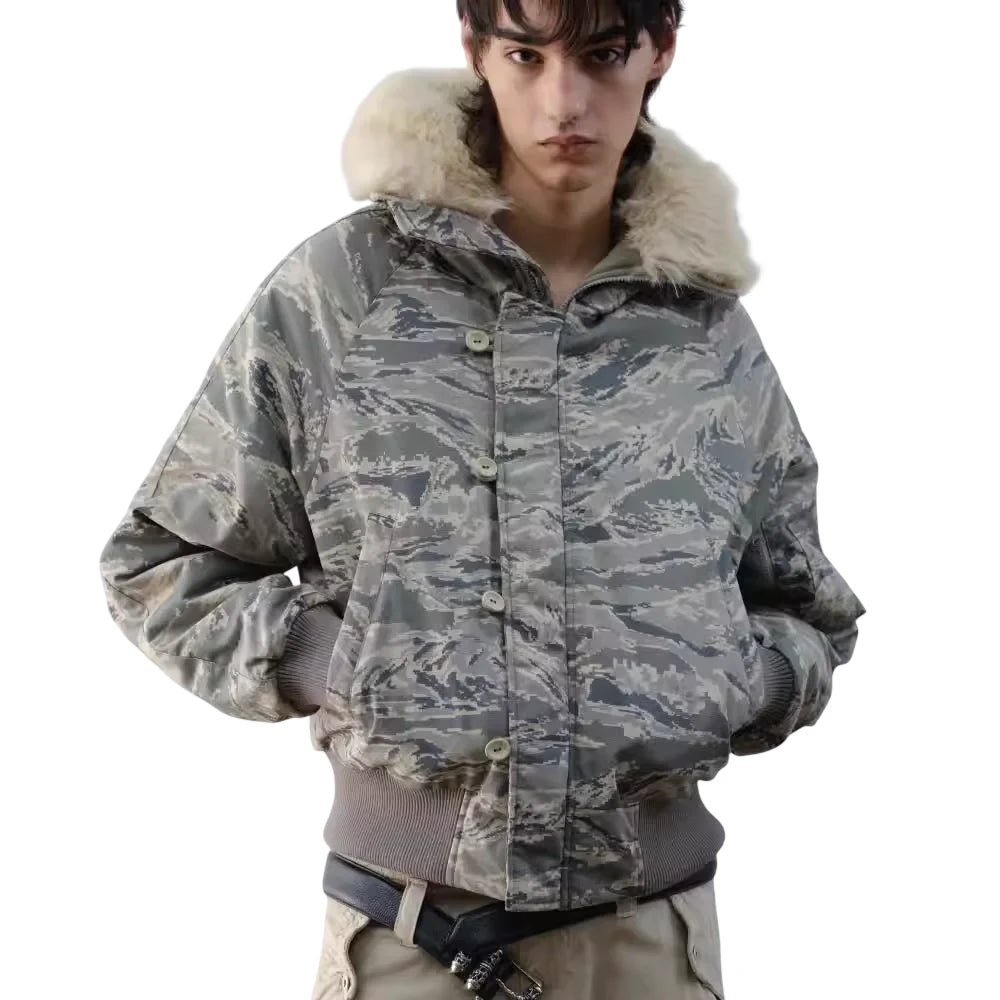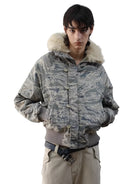 VLABMADE Tiger Camo Fur Collar Down Bomber Jacket