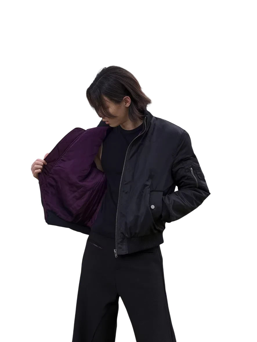 Y OFFICIAL Men's Waterproof Insulated High-Neck Flight Jacket with Purple Lining