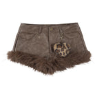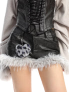 BIGGOLD STUDIO Off-Shoulder PU Leather Crop Top with Fur Trim and Lace-Up Waist