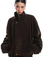 BIGGOLD STUDIO Women's Suede Utility Jacket with Stand Collar and Zipper Closure